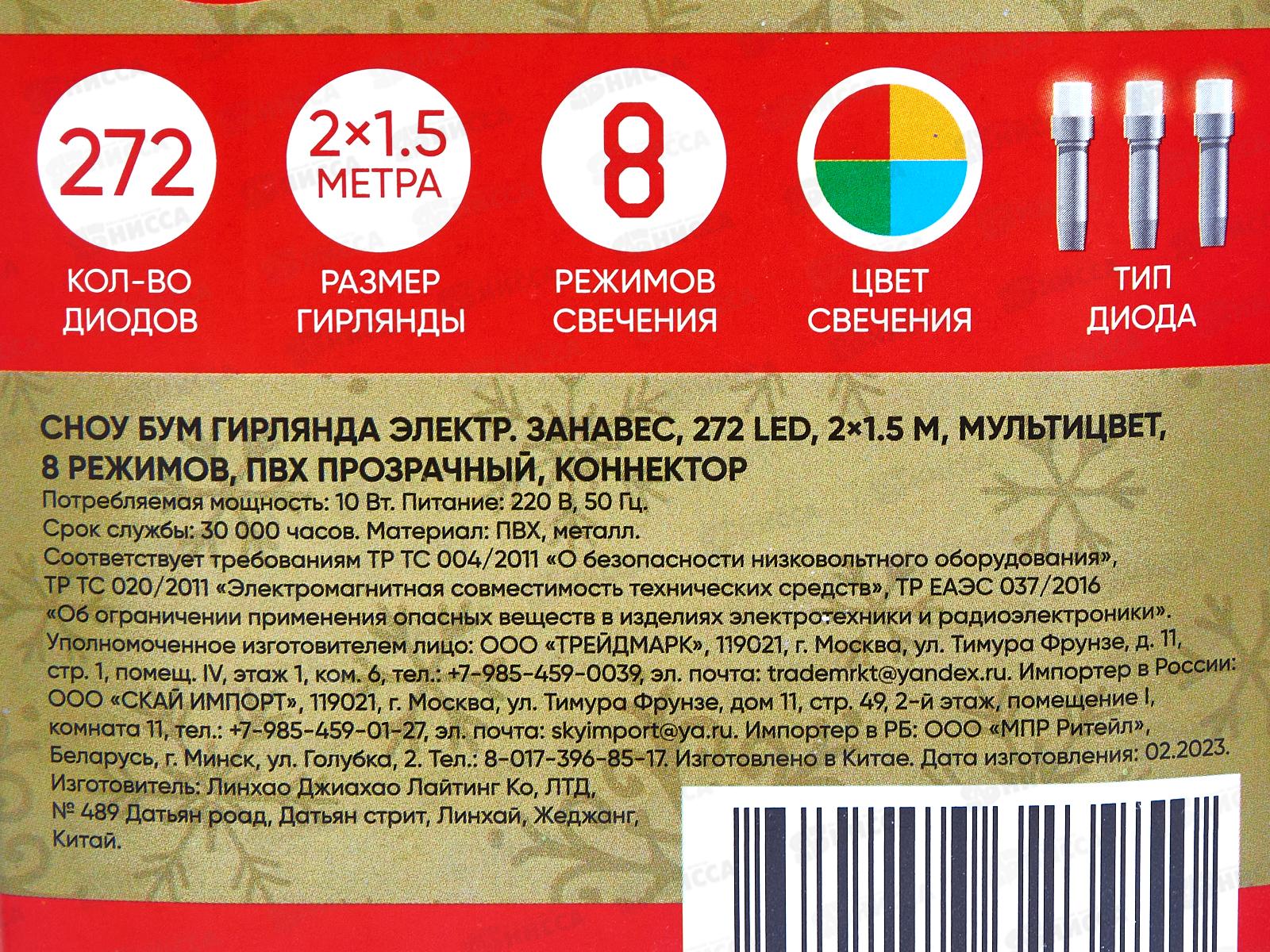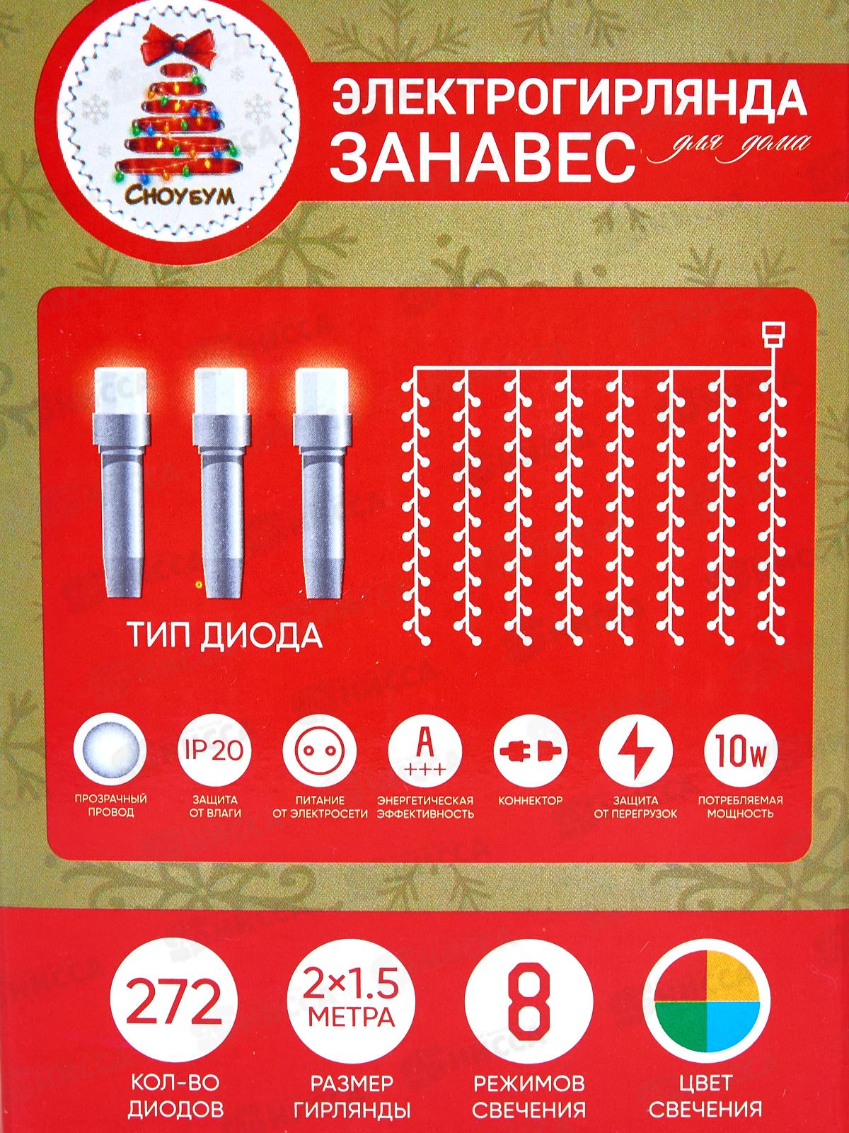 Гирлянда 2*1,5м занавес 272LED 8реж мультицвет, коннектор, 382-011 г