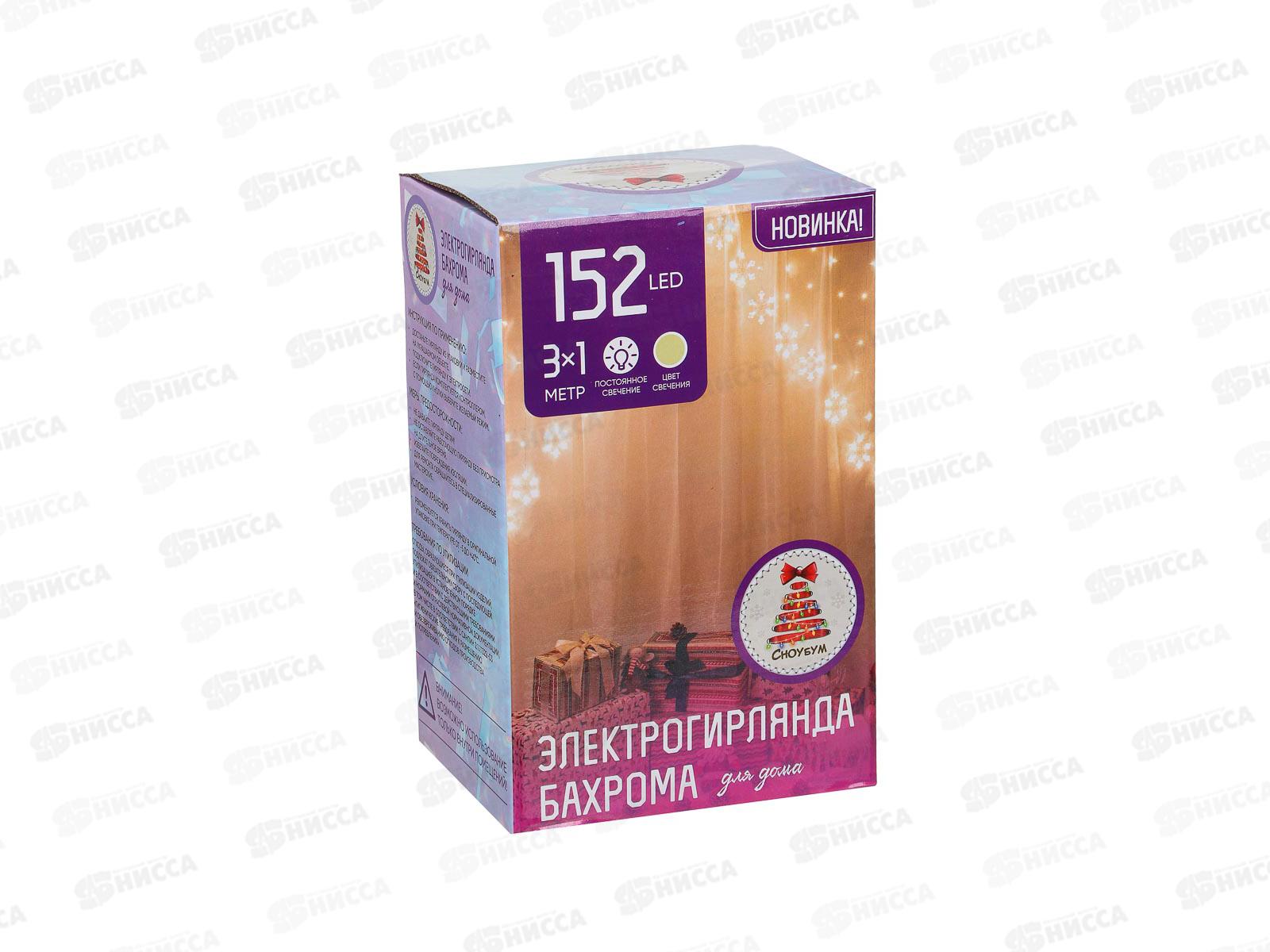 Гирлянда 3х1м бахрома LED152 шампань, пост. свечение, 382-043 г