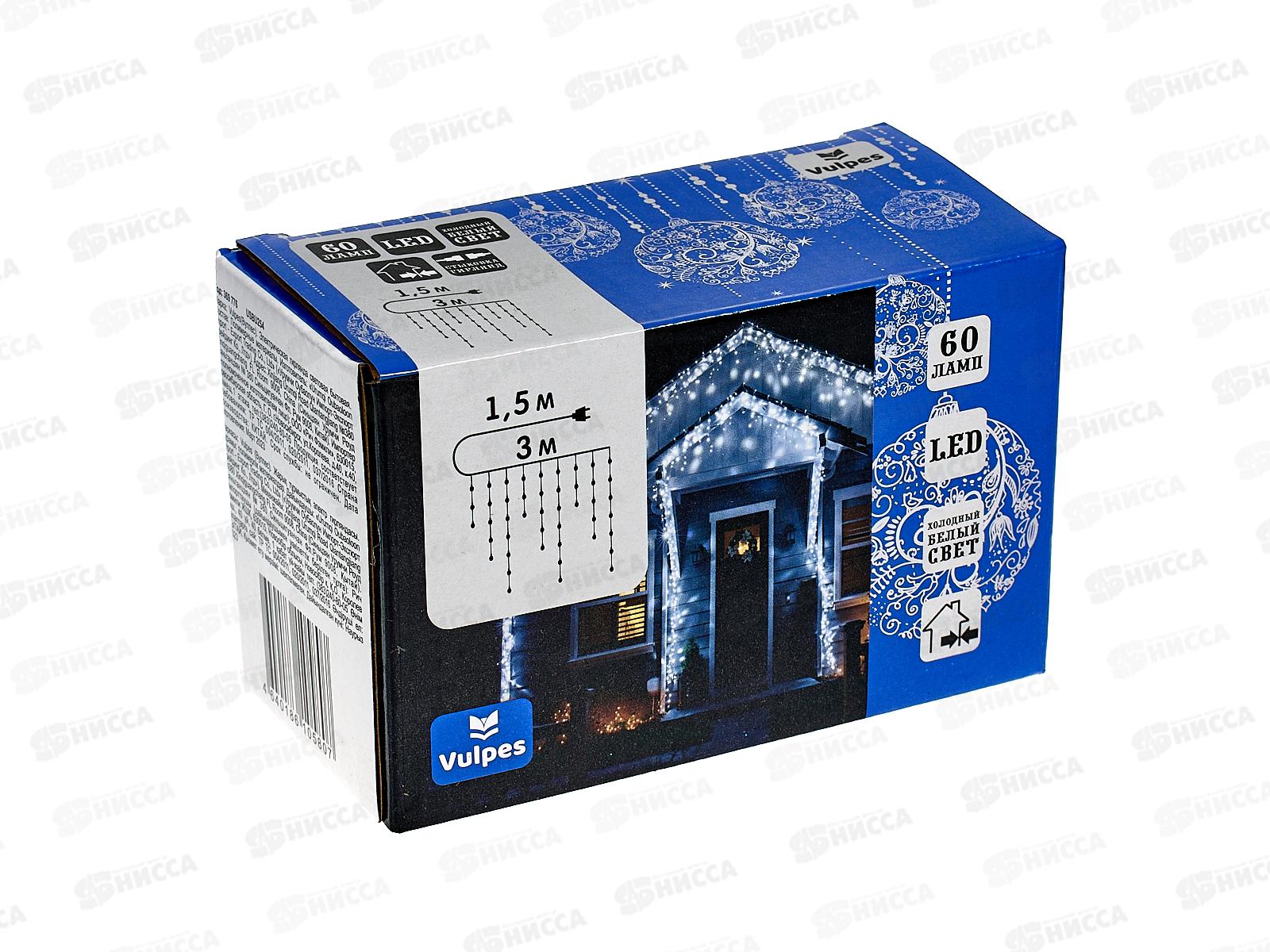 Гирлянда 3м Бахрома 60 Led холодный белый IP44 от сети, 369776 гб