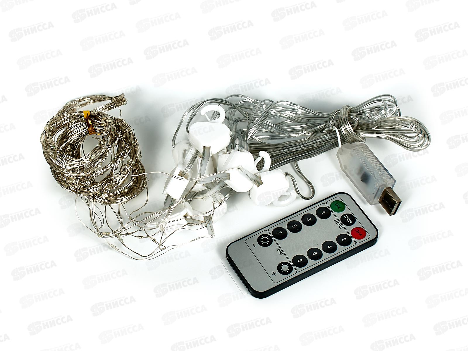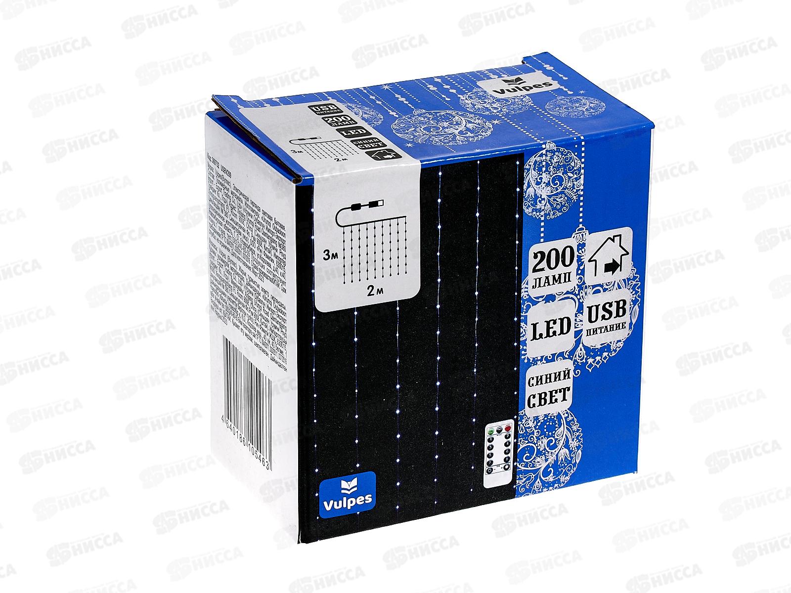 Гирлянда 3х2м ШТОРА 200 синих ламп, USB пульт, 369752 гб