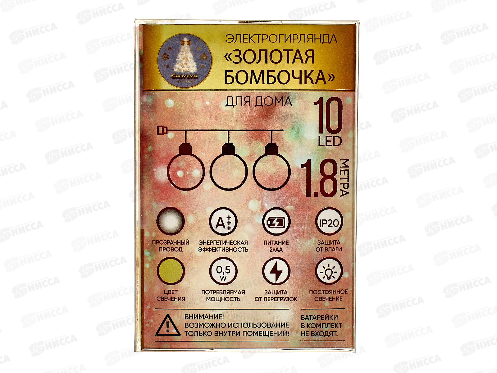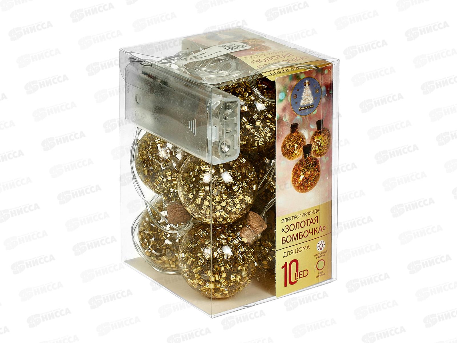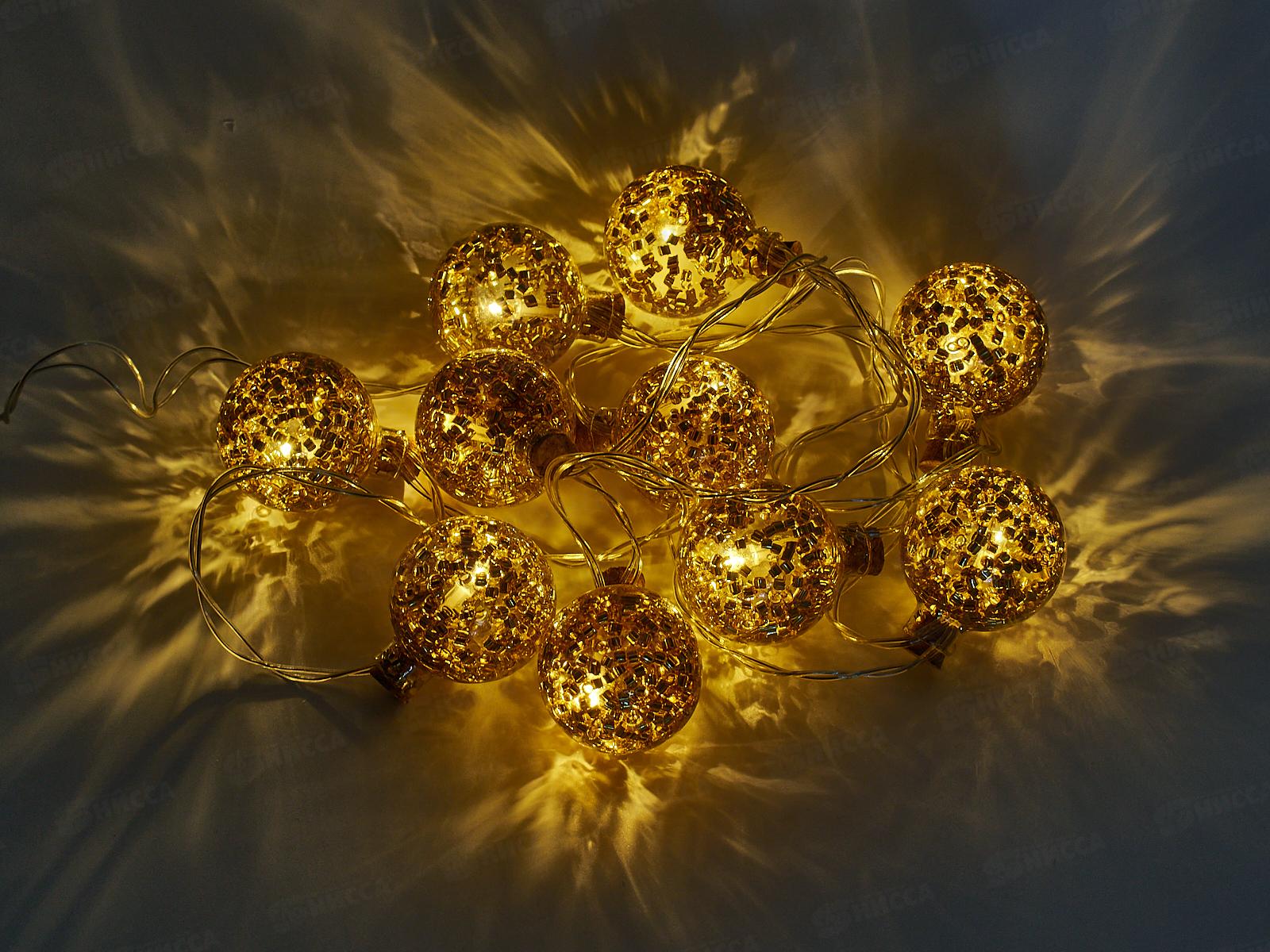 Гирлянда 1,8м "Золотая бомбочка" 10LED шампань, тип питания от батареек 381-430 г