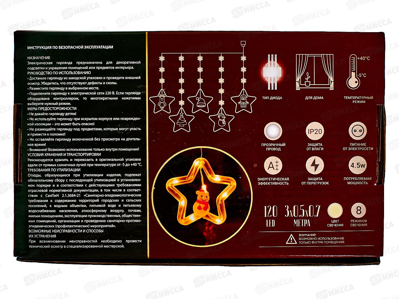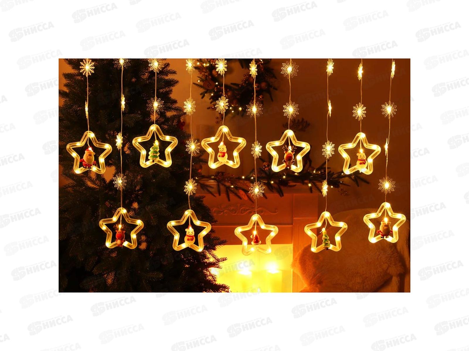 Гирлянда 3*0,7м "Звезды и рождество" 120LED шампань 382-082 г