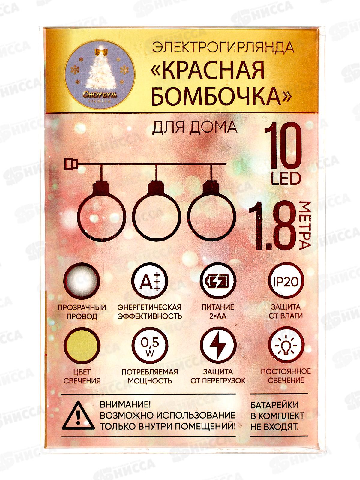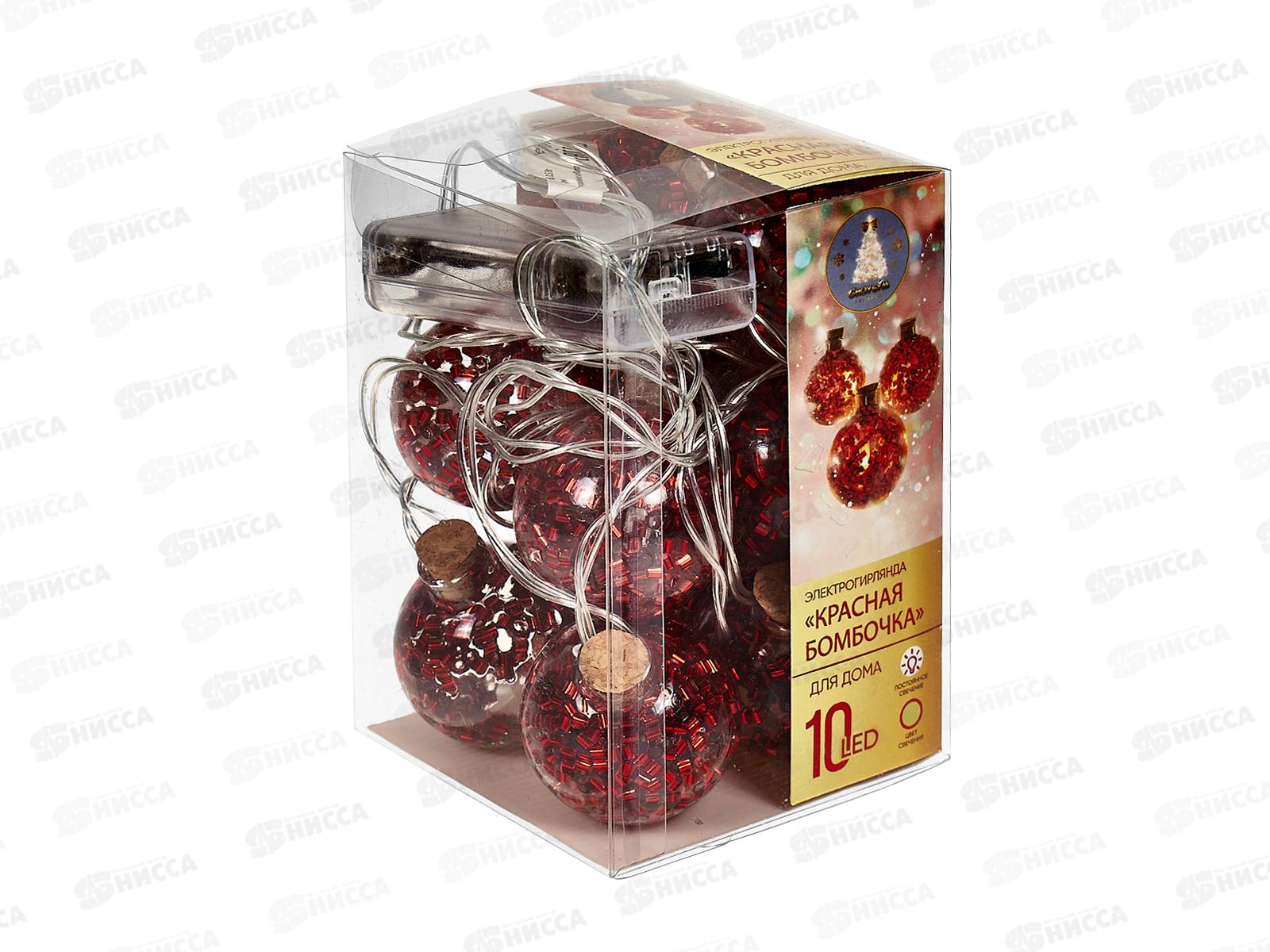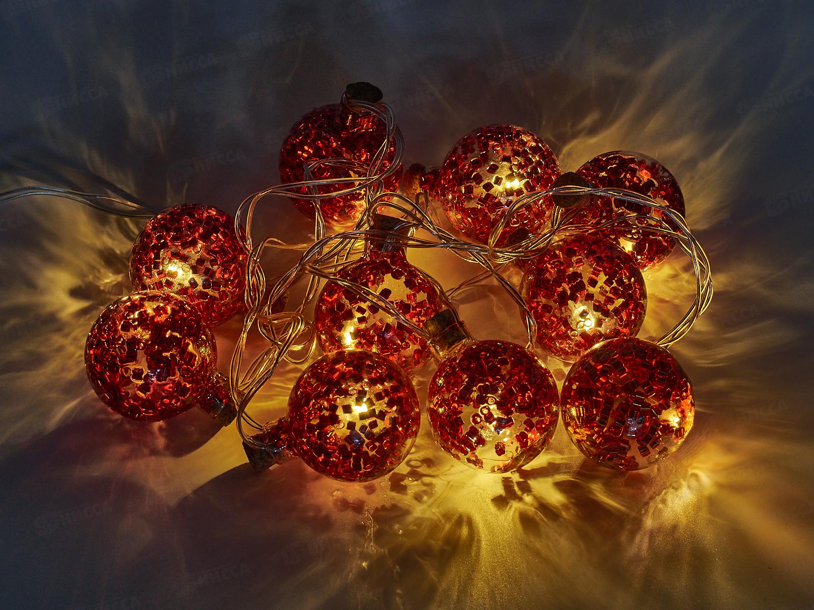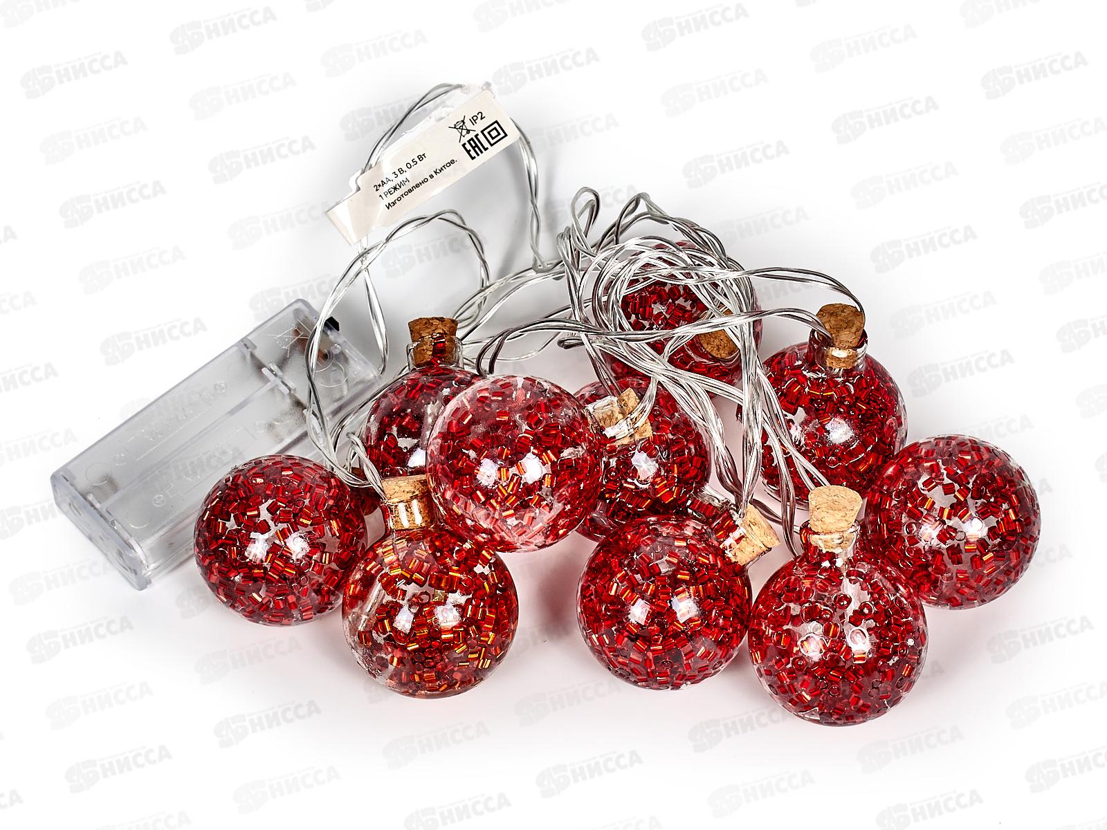 Гирлянда 1,8м "Красная бомбочка" 10LED шампань, тип питания от батареек 381-431 г