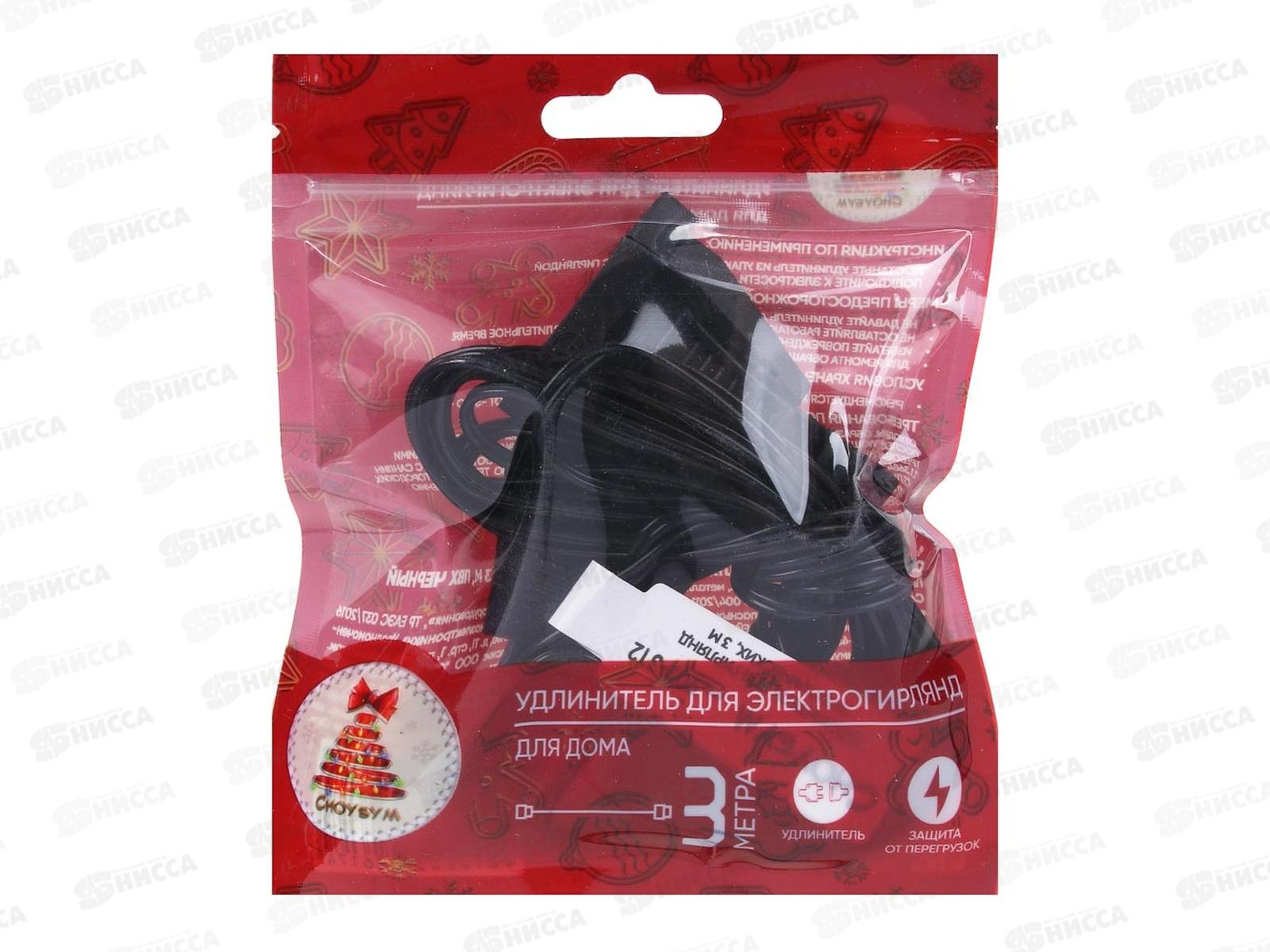 Удлинитель для гирлянд 3м ПВХ 220В 907-312 г