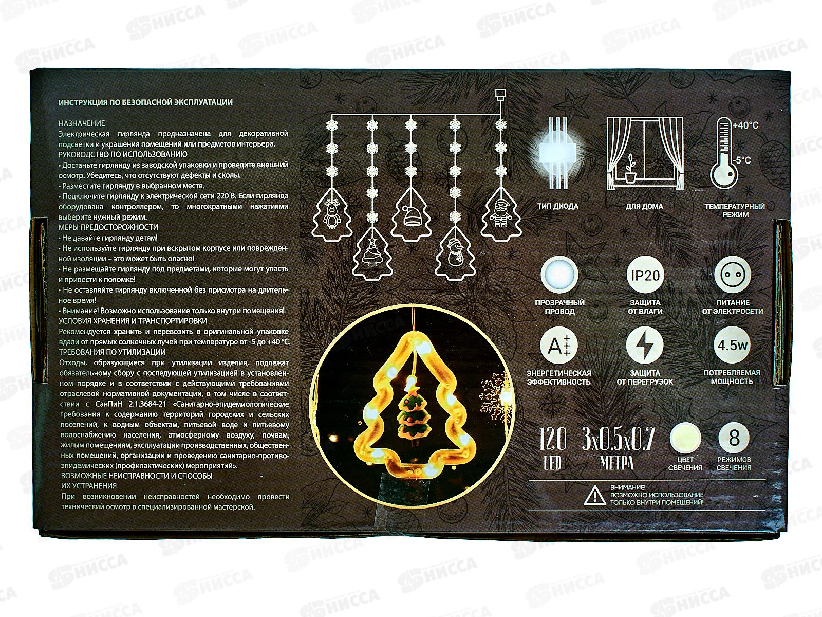 Гирлянда 3*0,7м "Елочки и рождество" 120LED шампань 382-083 г