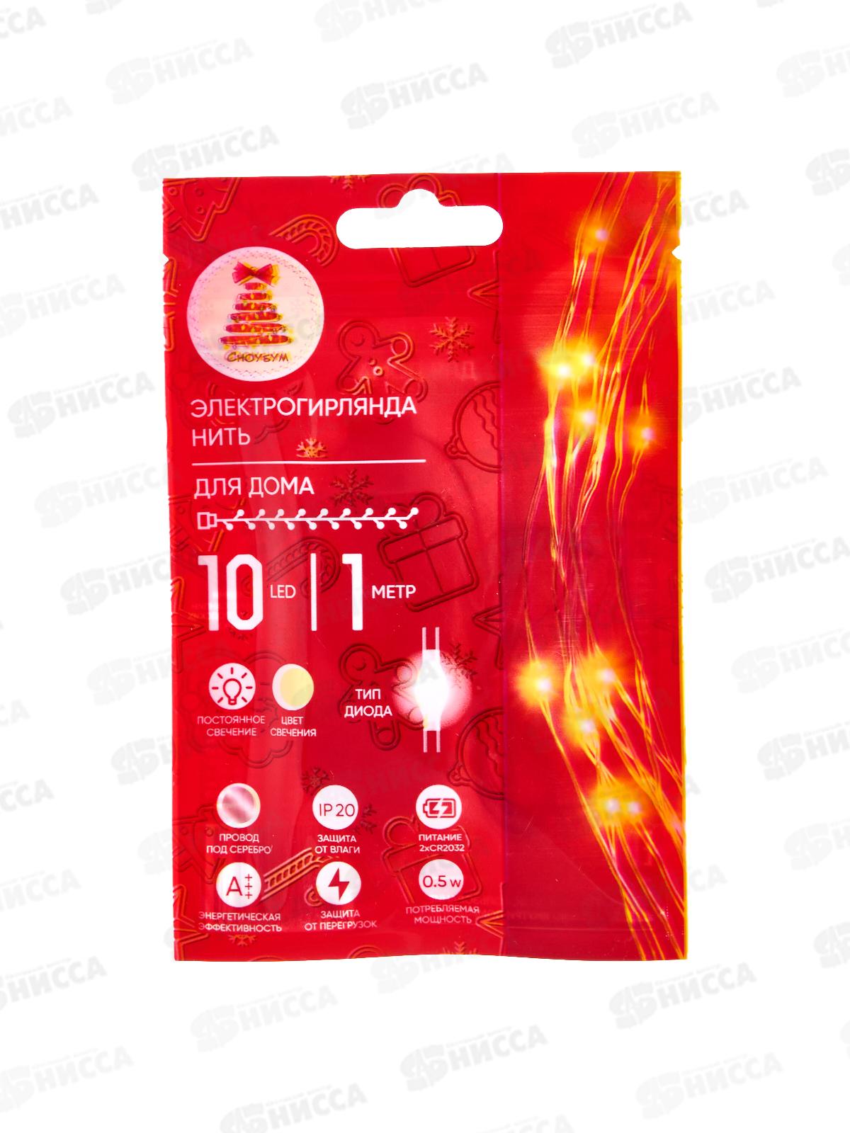 Гирлянда 1м нитка росы 10LED шампань, тип питания от батареек 384-164 г