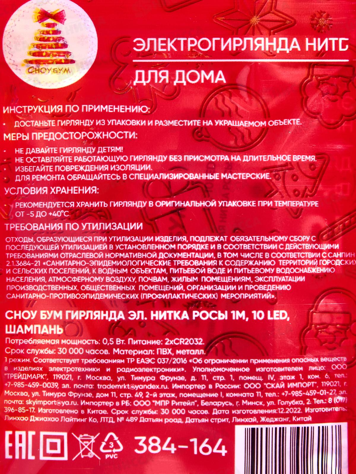 Тип товара: Гирлянда электрическая