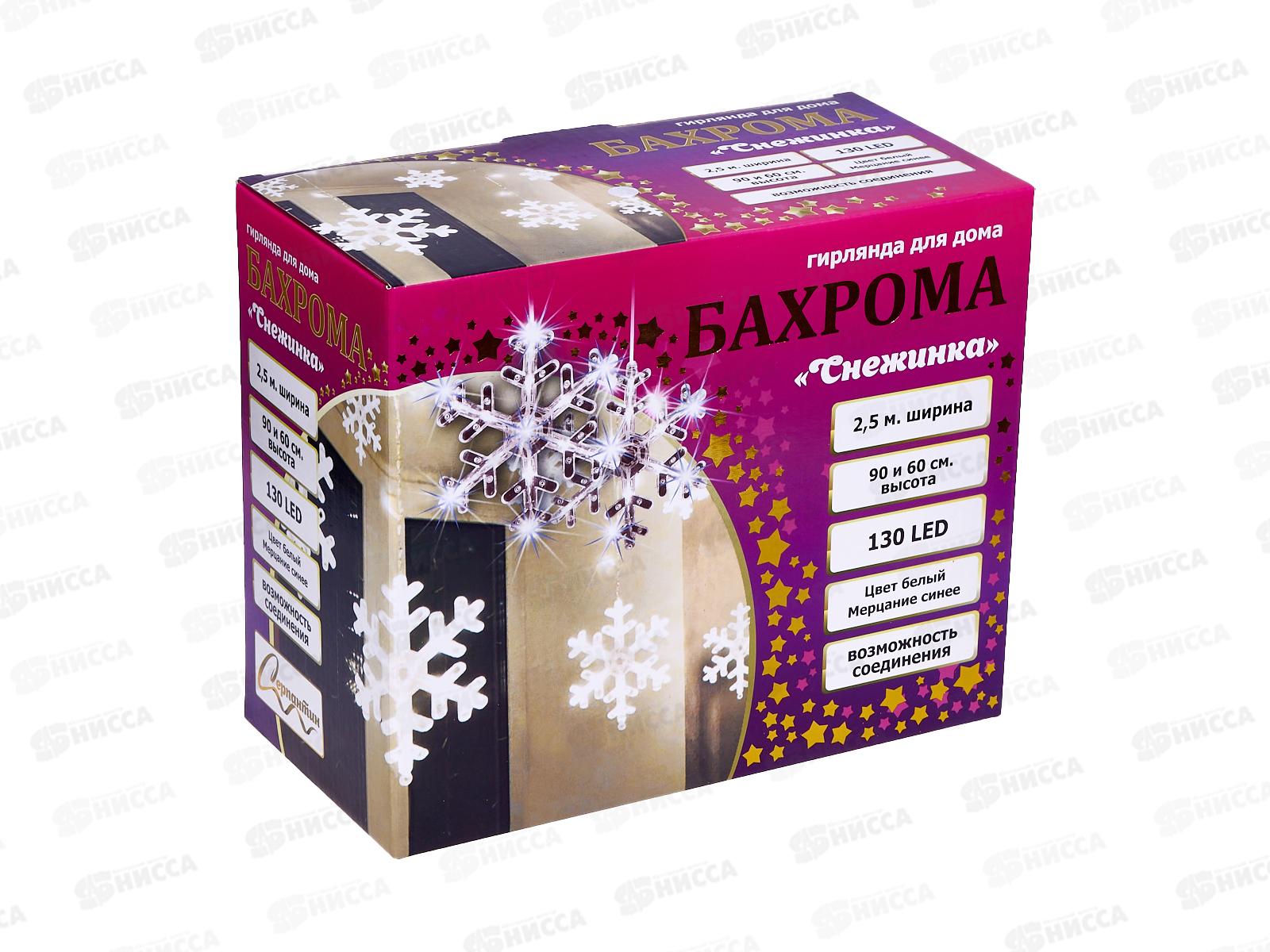 Гирлянда 2,5*0,9м "Снежинка" 130LED бел/син 130-303