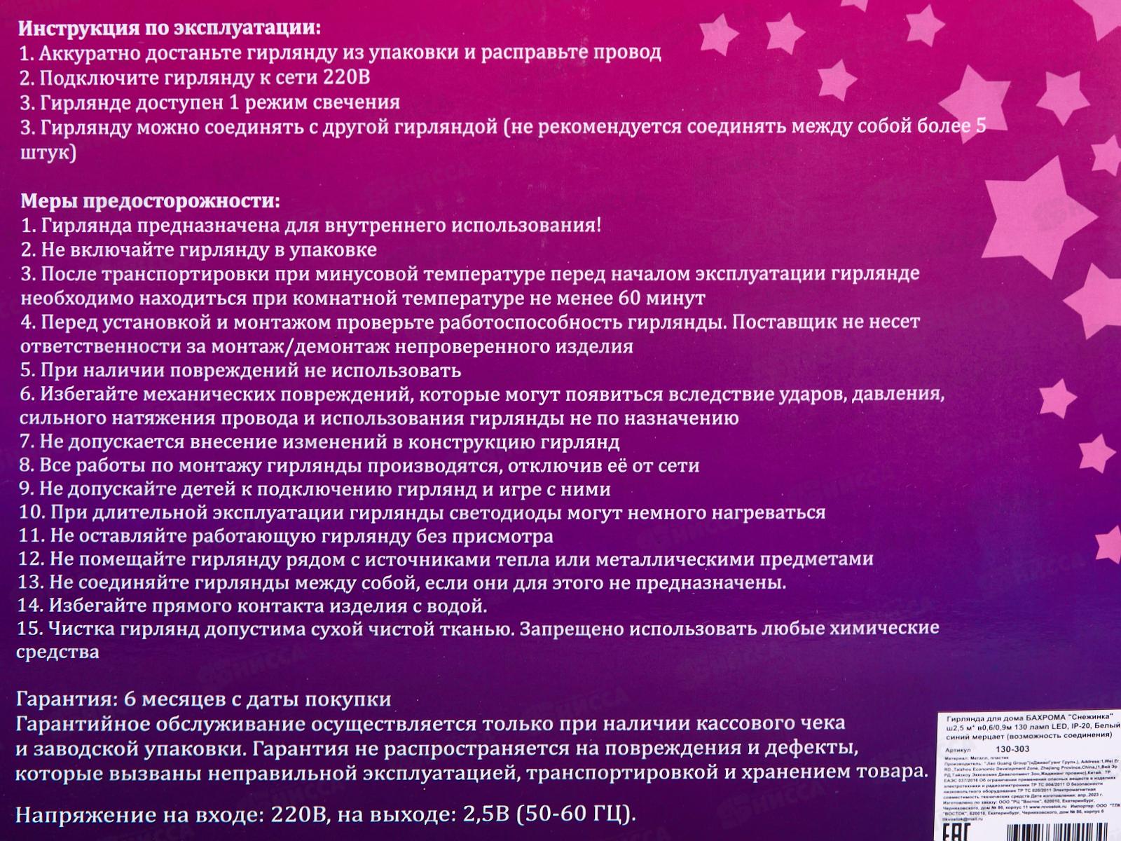 Тип товара: Гирлянда электрическая