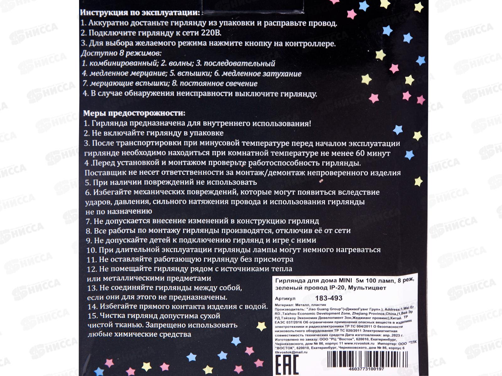 Гирлянда 5м Мини 100 ламп 8 реж IP-20 мульти 183-493