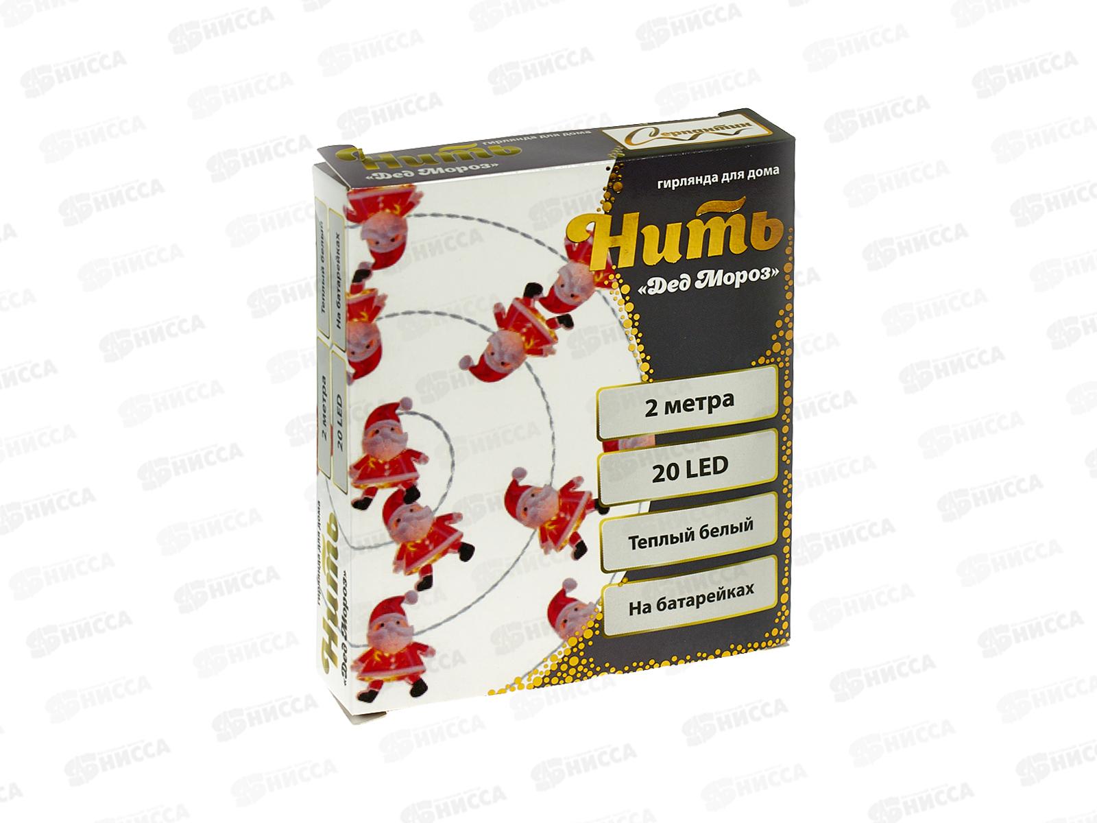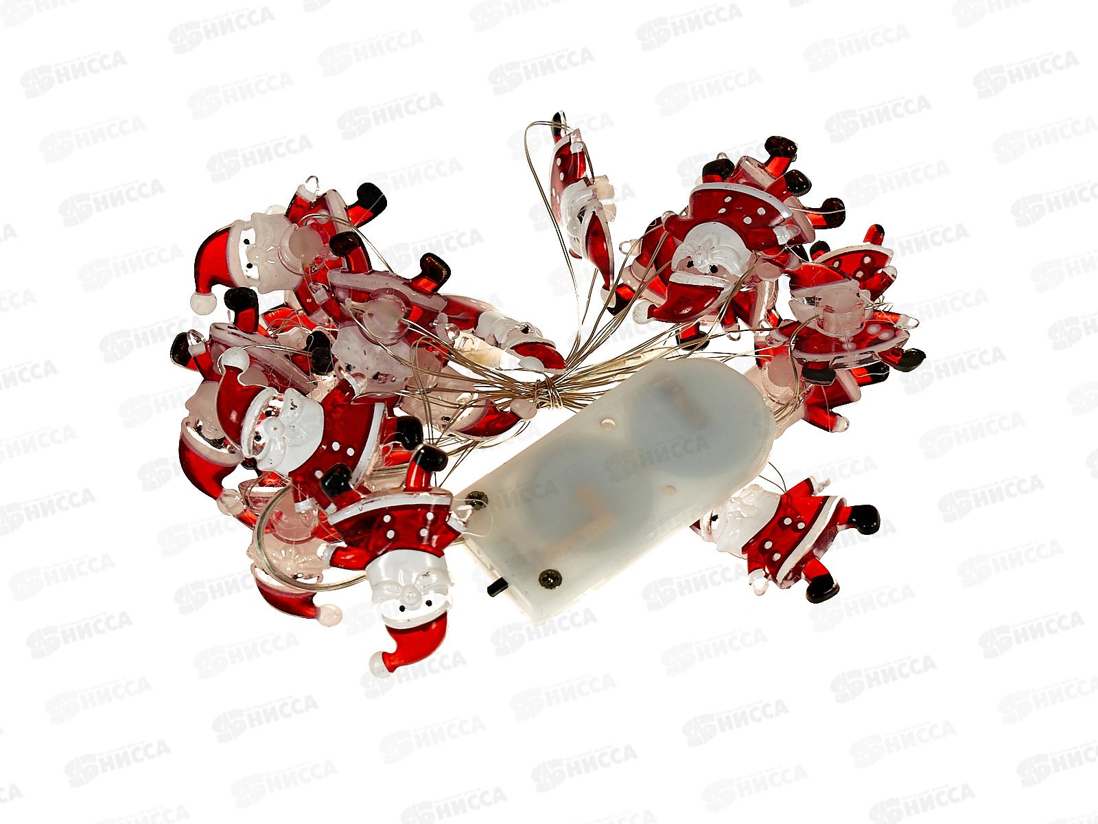 Гирлянда 2м "Дед Мороз" 20 LED 1 режим теплый белый, тип питания от батареек 183-0402