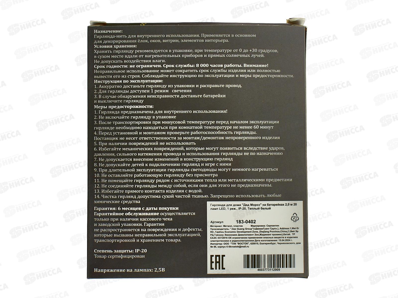 Тип товара: Гирлянда электрическая