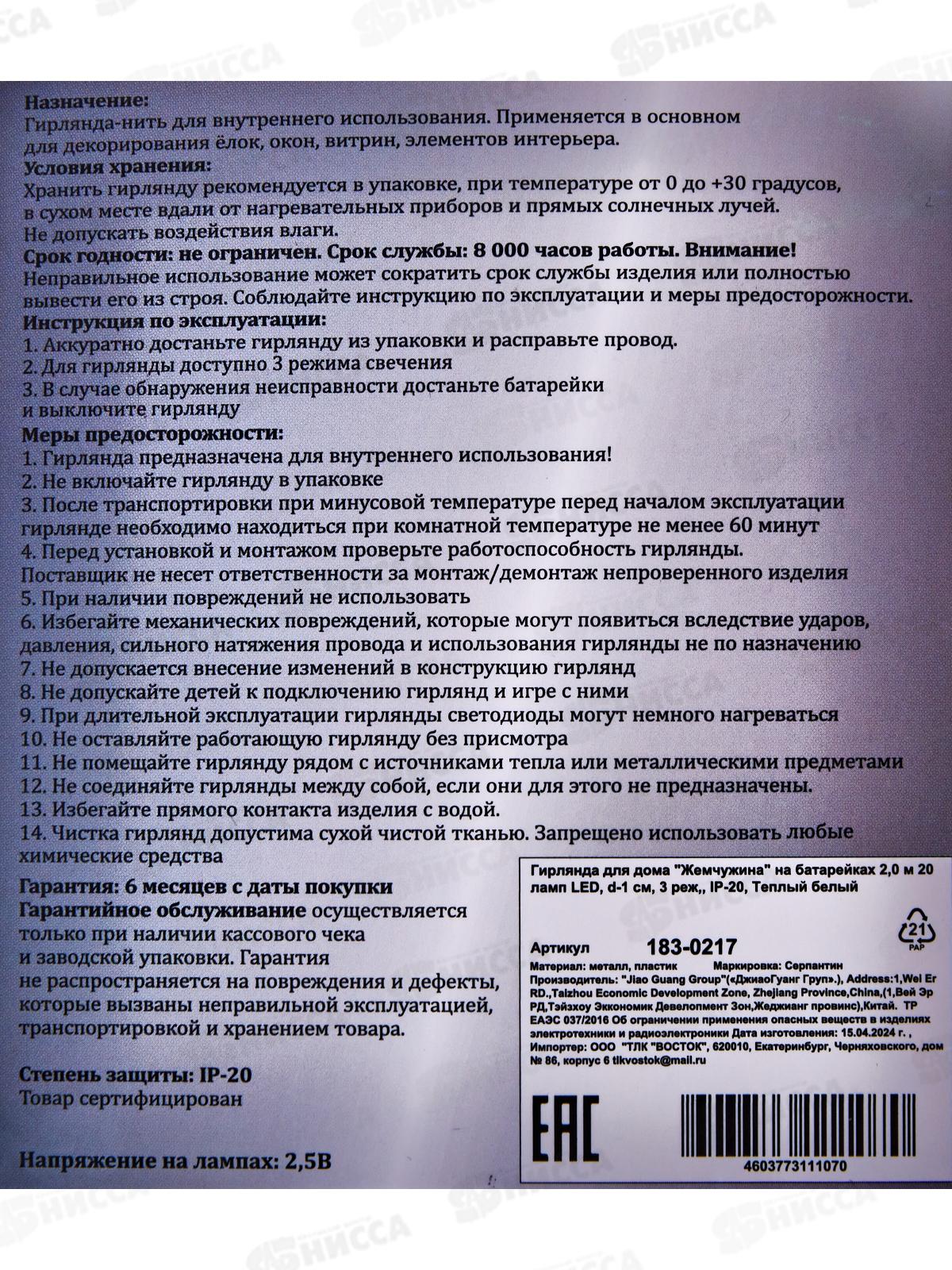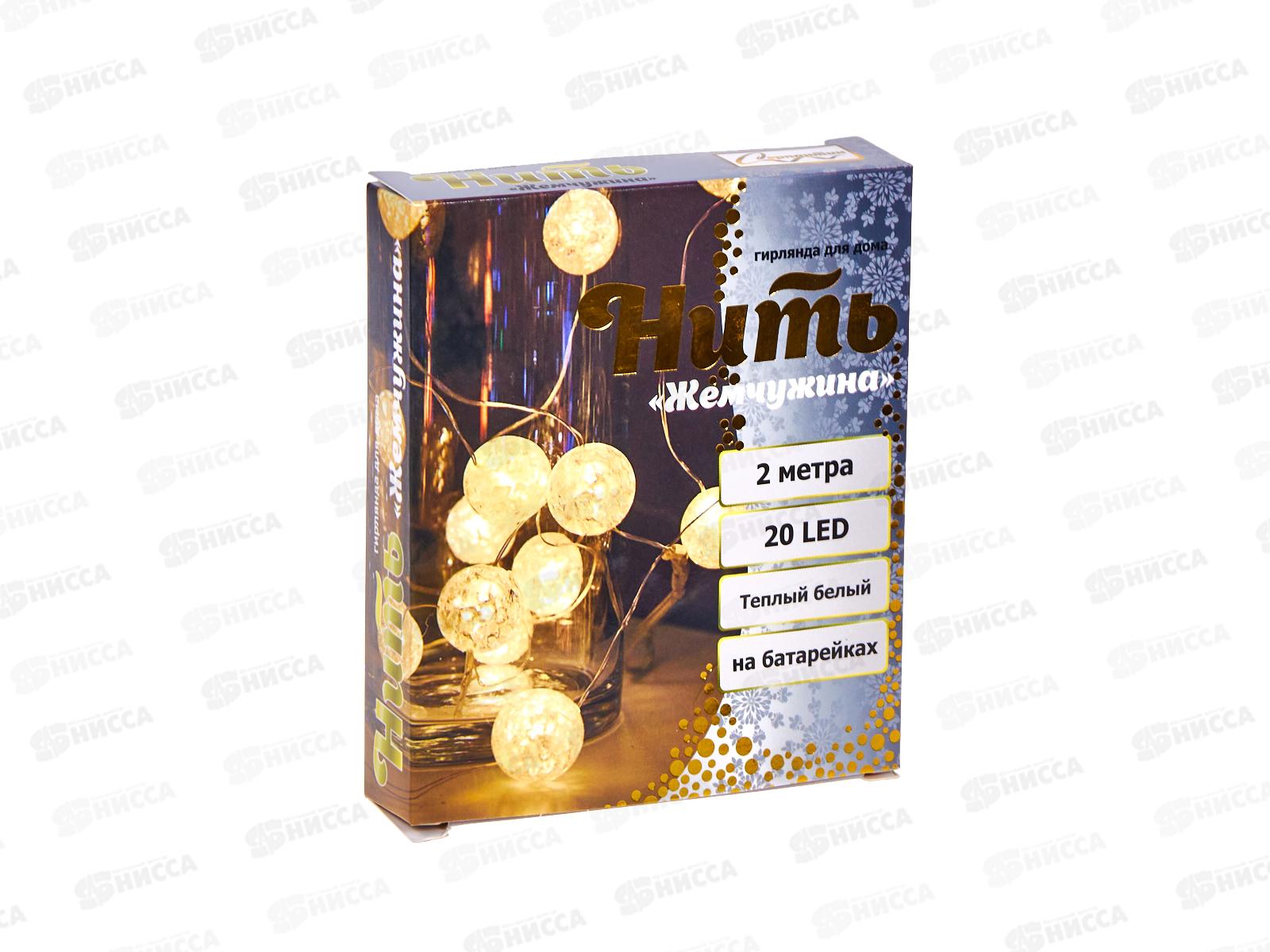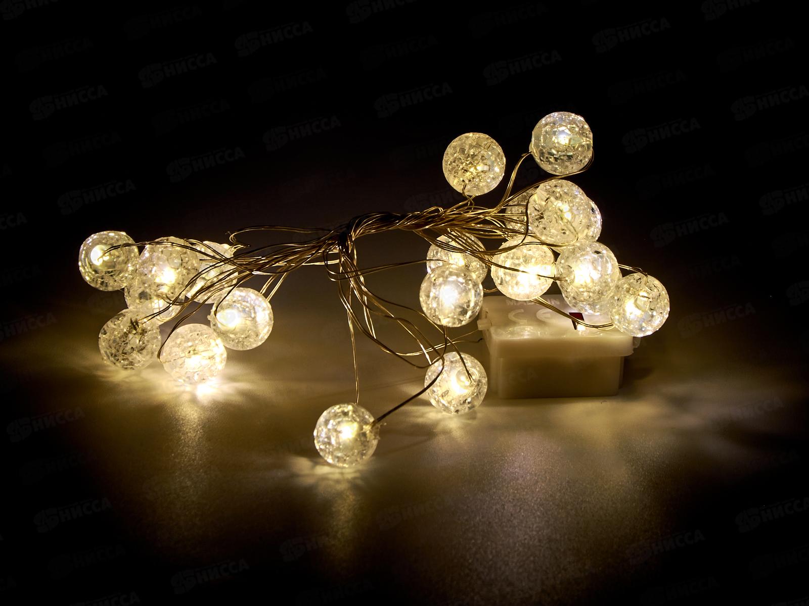 Гирлянда 2м Жемчужина 20LED 3 режима теплый белый 183-0217