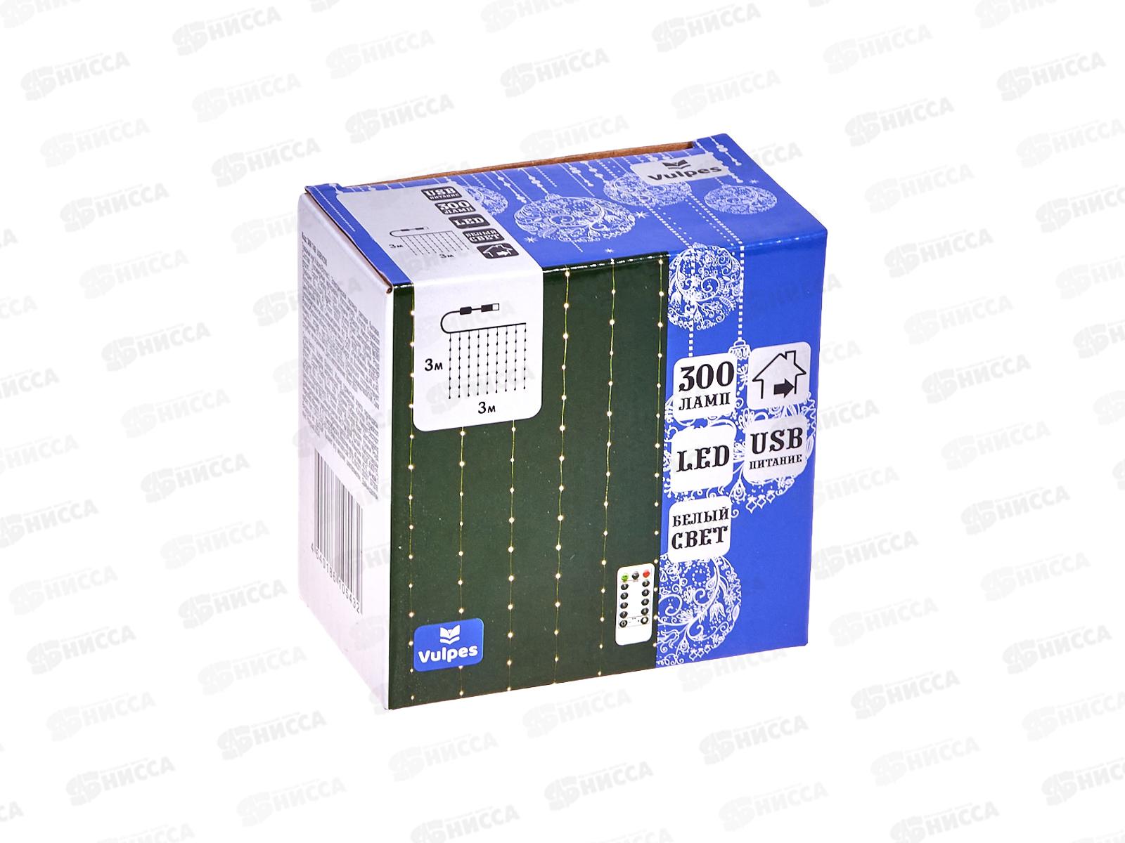 Гирлянда 3х3м ШТОРА 300 холодных белых ламп, USB пульт, 369749 гб