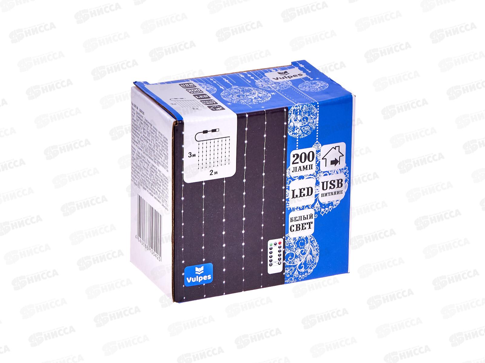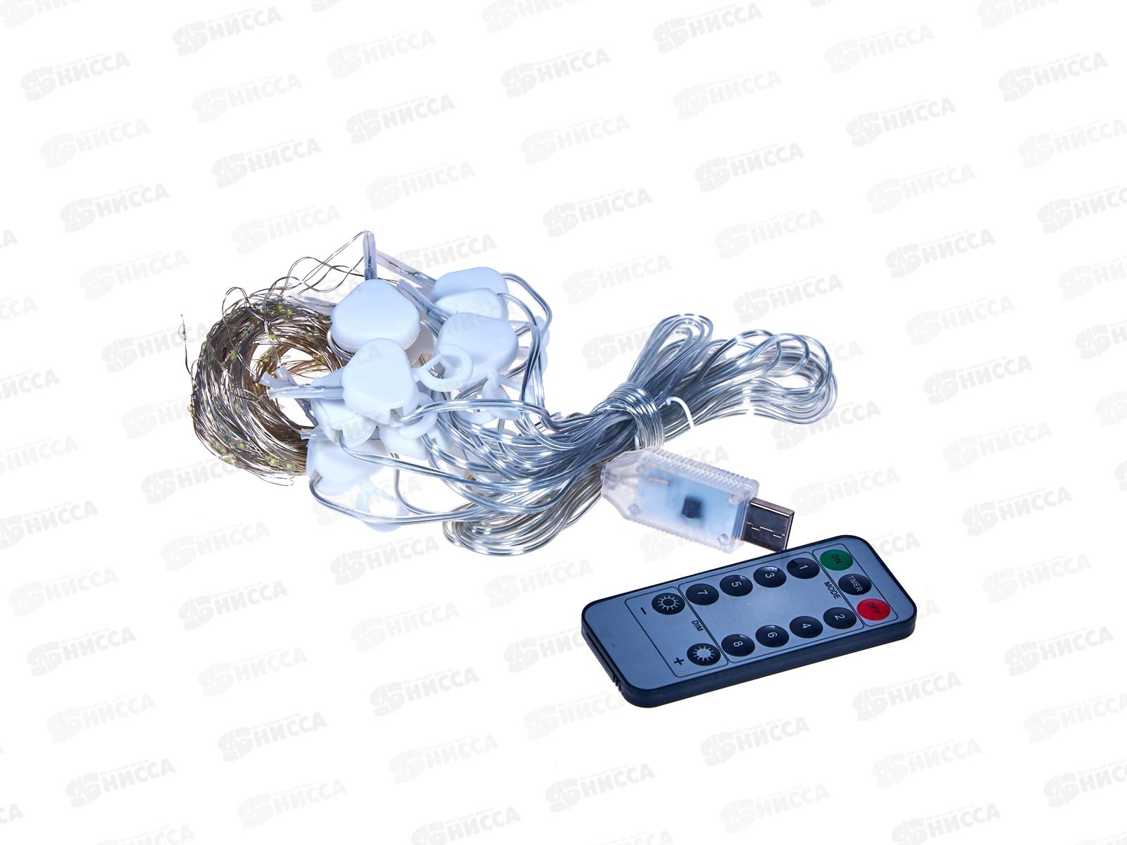 Гирлянда 3х2м ШТОРА 200 холодных белых ламп, USB пульт, 369748 гб