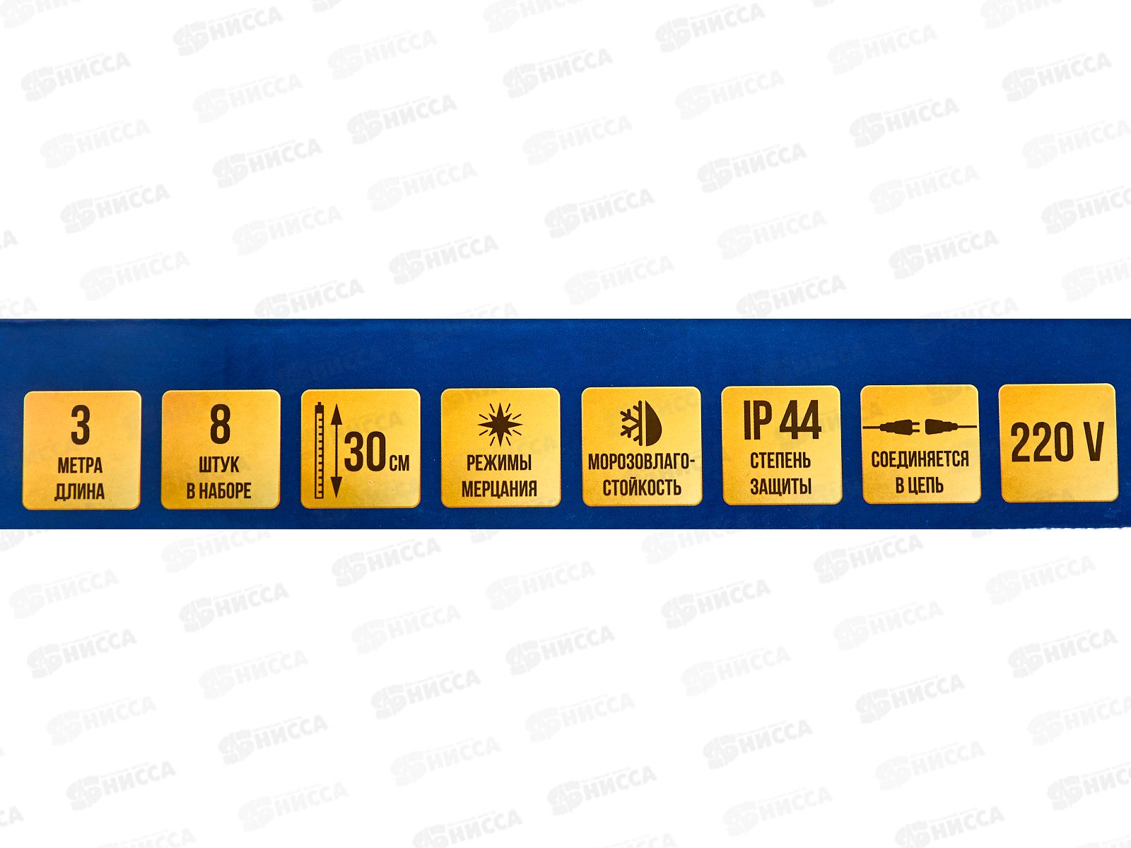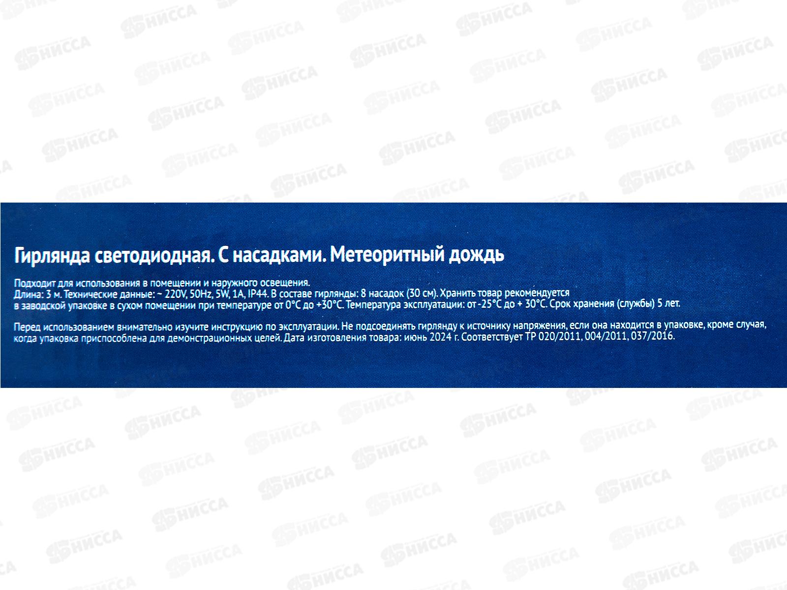 Гирлянда 3м "Метеоритный дождь" с насадками 8шт, 30см, синий, ГН-0016