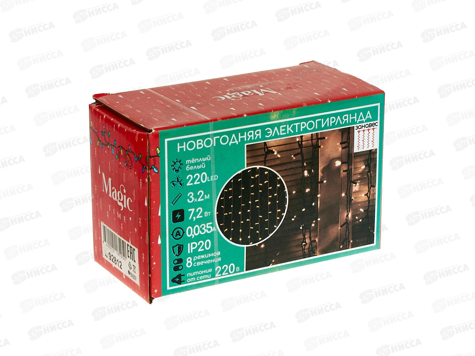 Гирлянда 3х2м 220 LED ламп, теплый белый, 8 режимов, 92812