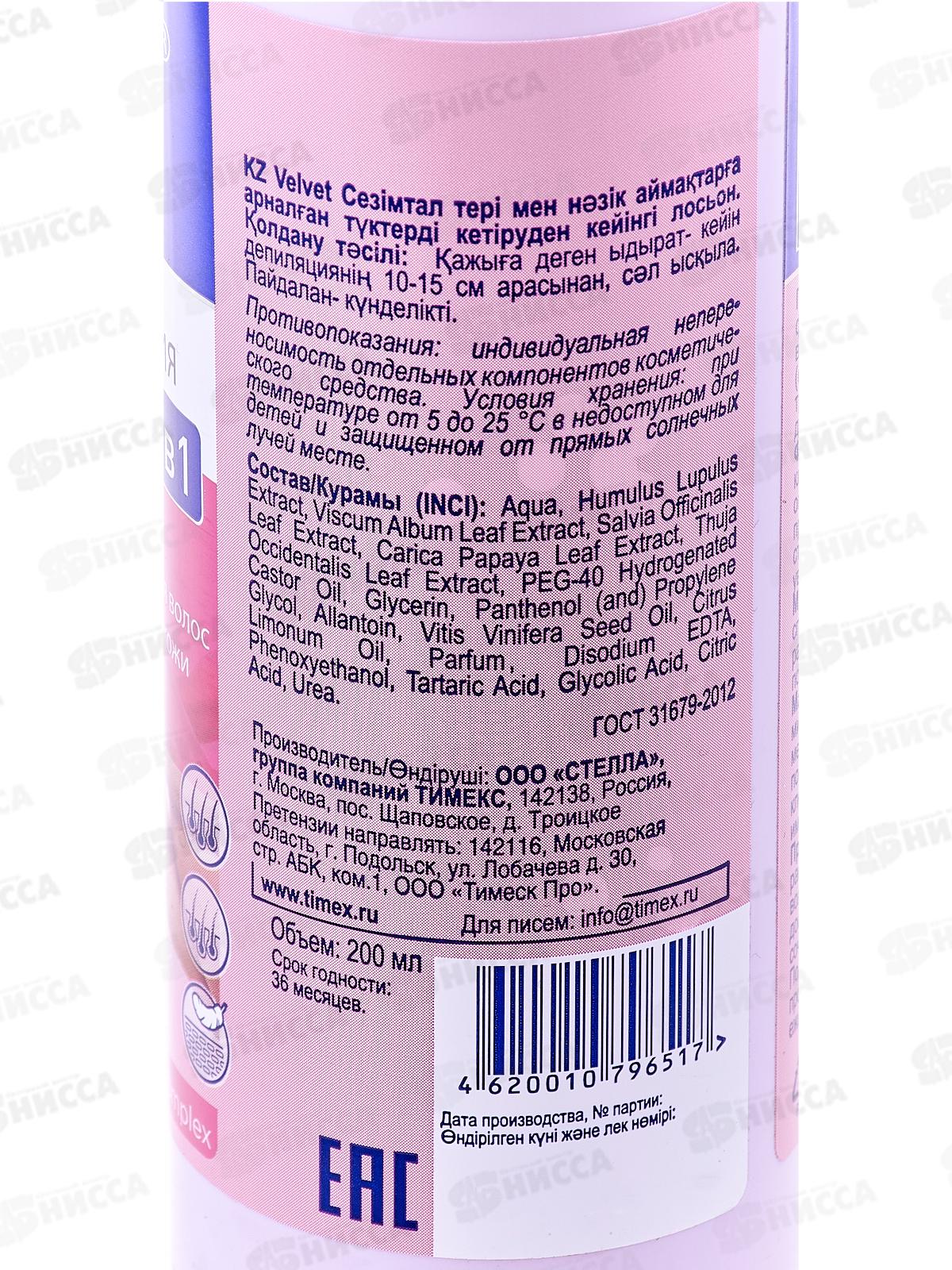 ВЕЛЬВЕТ Лосьон 5в1 после удаления волос и для замедления роста 200мл *24
