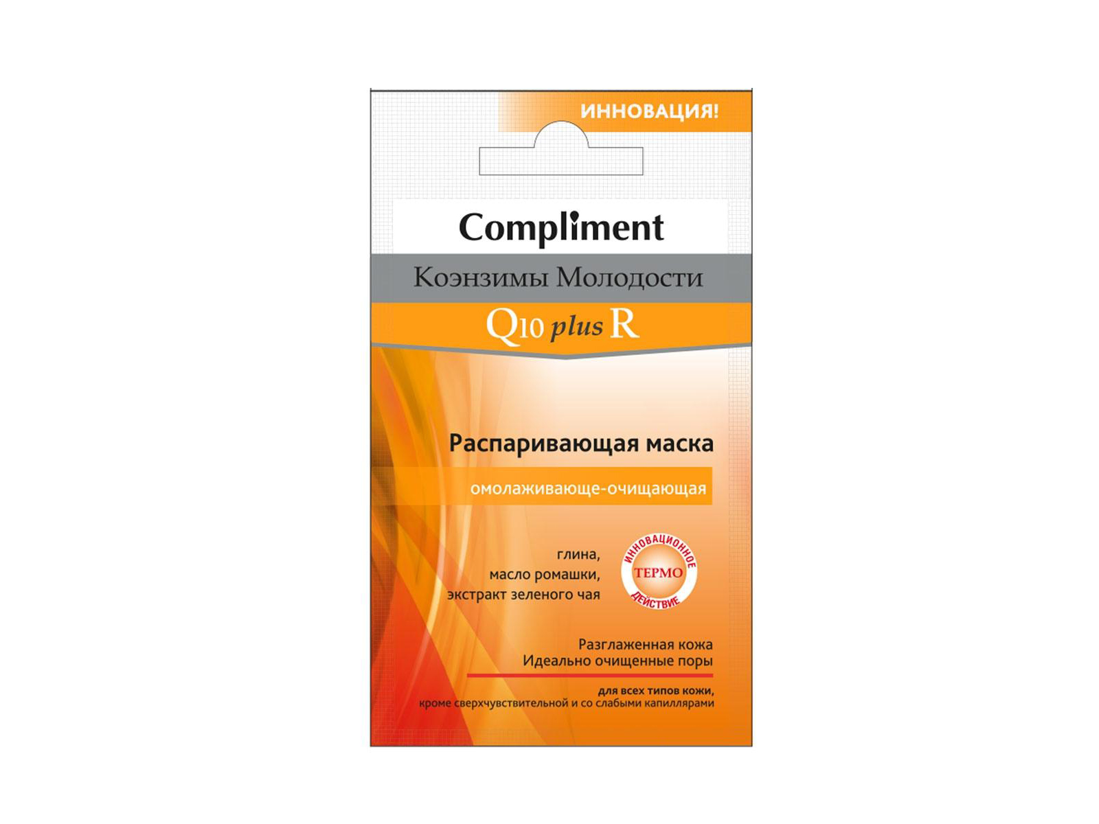 Распаривающая омолаживающе-очищающая маска "Коэнзимы молодости Q10plusR" Compliment – это мягкая и легкая в использовании альтернатива микродермабразии, омолаживающе-очищающей процедуры, осуществляемой в кабинетах эстетической медицины для восстановления и омоложения кожи. Благодаря уникальной термической технологии активные компоненты маски глубоко проникают в клетки кожи, оказывая максимальное очищающее и омолаживающее действие. Маска идеально разглаживает эпидермис и повышает упругость и эластичность кожи. Коэнзимы Q10+R – обеспечивают интенсивное сокращение морщин, предупреждая образование новых. Глина – активно притягивает и устраняет токсичные вещества. Оказывает антисептическое воздействие, укрепляет защитные свойства кожи. Масло ромашки – эффективно снимает раздражение и покраснение. Экстракт зеленого чая – сильный антиоксидант, защищает кожу от вредного воздействия внешних факторов. Способ применения: Нанесите маску на очищенную кожу лица, оставьте на 5-10 минут и смойте водой.Рекомендуется использовать 1-2 раза в неделю.