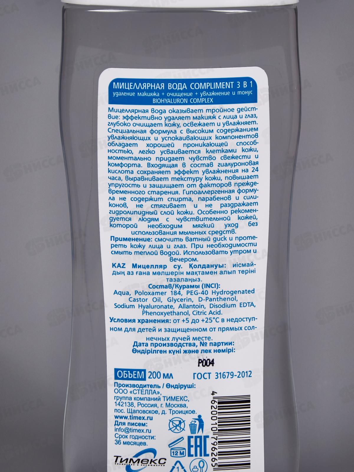КОМПЛИМЕНТ Мицеллярная вода 3в1 200мл *28