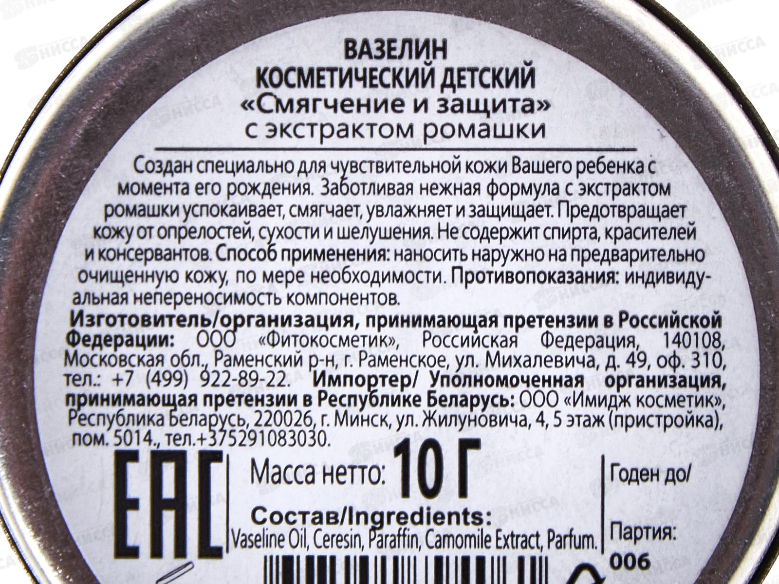 Вазелин косметический "Детский" с экстрактом ромашки 10г *80