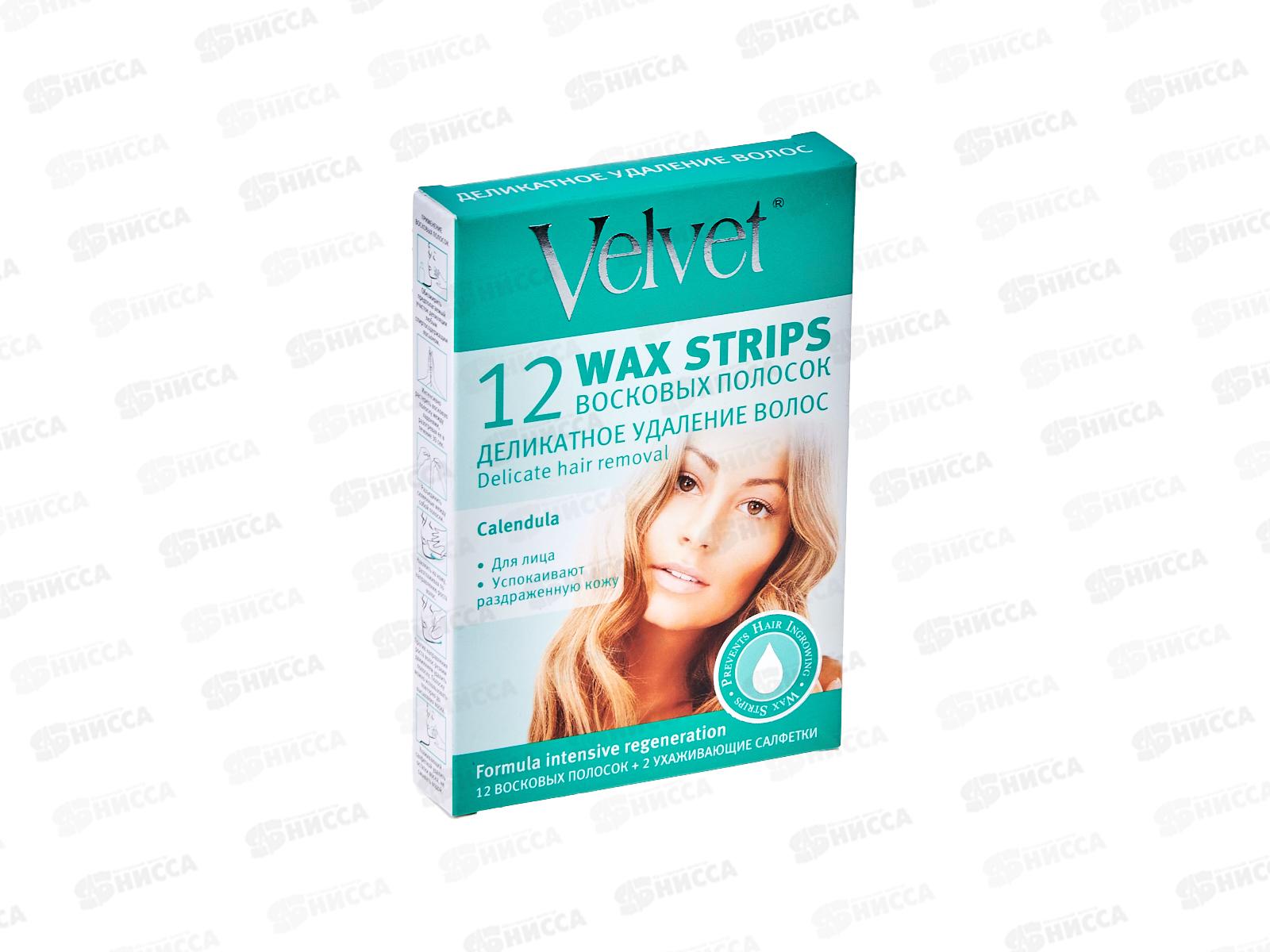 ВЕЛЬВЕТ Восковые полоски для лица Деликатное удаление волосков 12шт *24