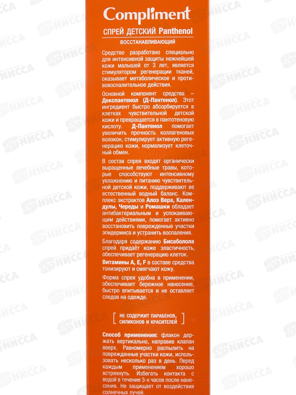 КОМПЛИМЕНТ Panthenol Спрей детский восстанавливающий при ожогах 3+ 150мл *15