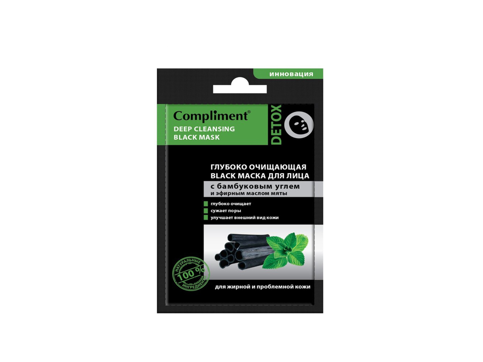 КОМПЛИМЕНТ BLACK маска глубокое очищение для жирной и проблемной кожи лица с бамбуковым углем 15мл *48