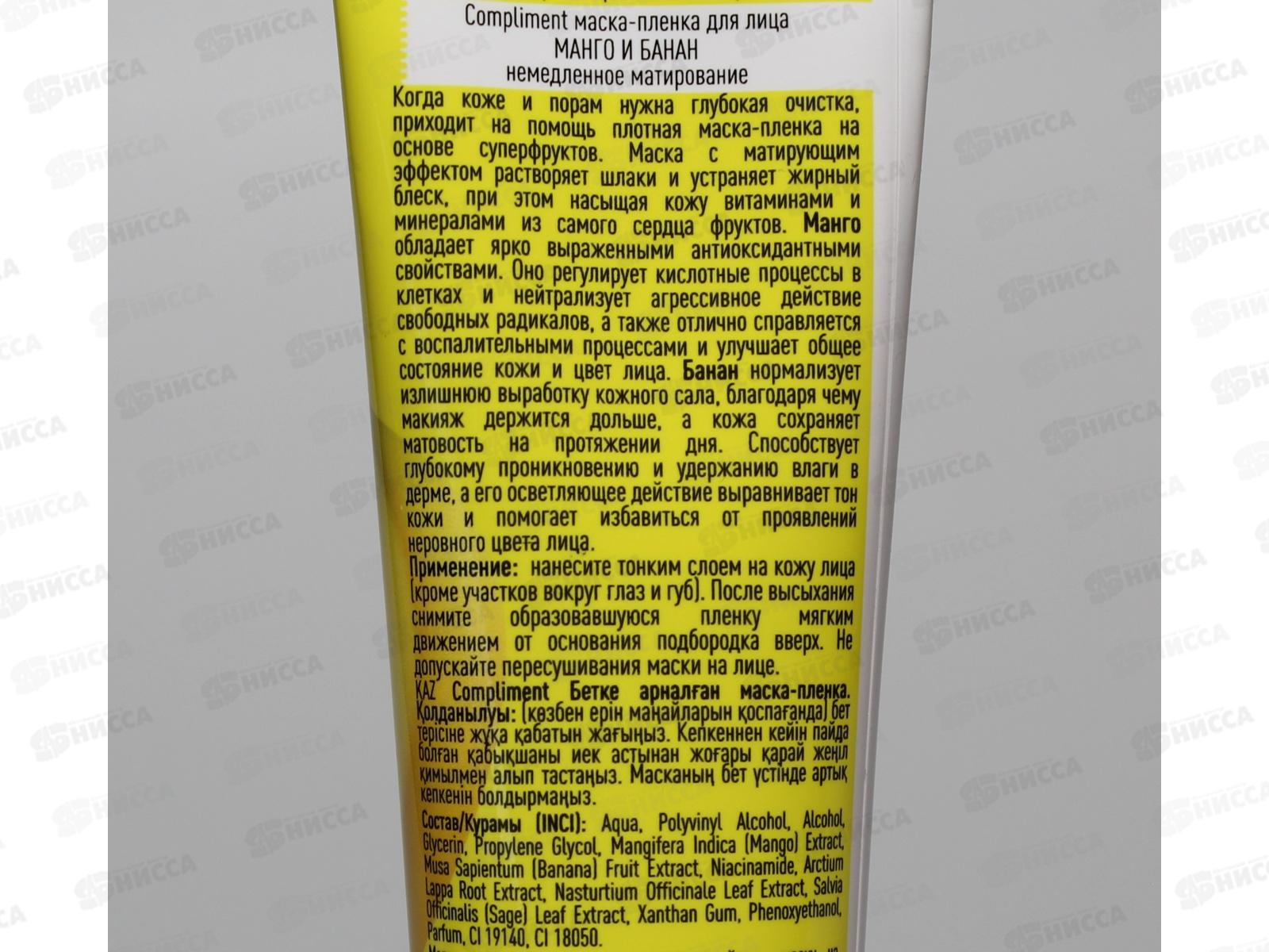 КОМПЛИМЕНТ маска-пленка для лица Манго-Банан немедленное матир 100мл *12