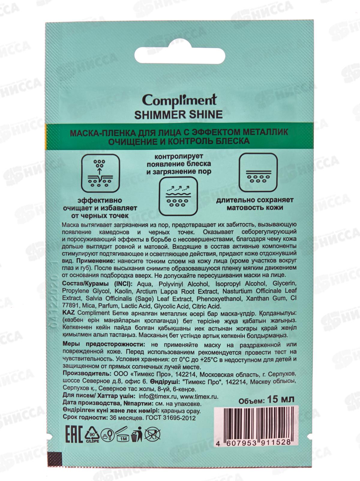 КОМПЛИМЕНТ S.S. маска пленка саше для лица контроль блеска 15мл 911528 *48