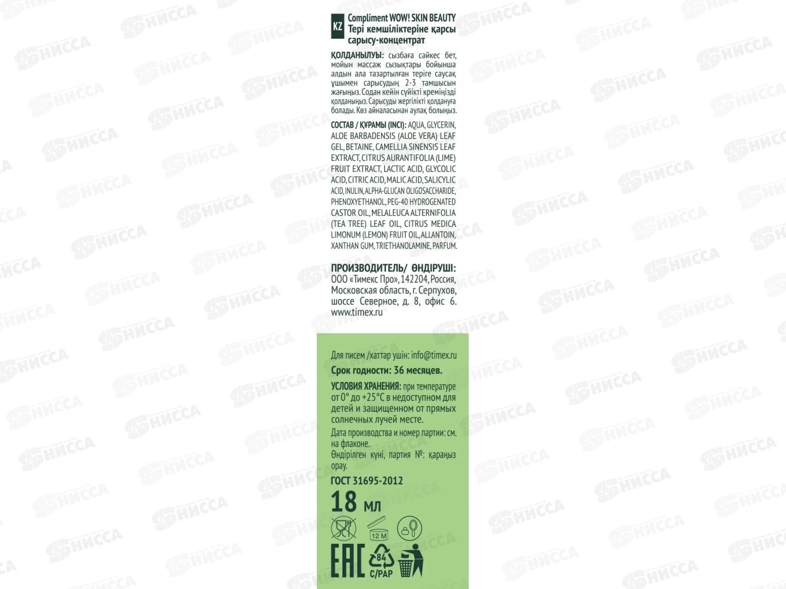 КОМПЛИМЕНТ WOW! Skin beauty Сыворотка-концентрат против несовершенств 18мл *12