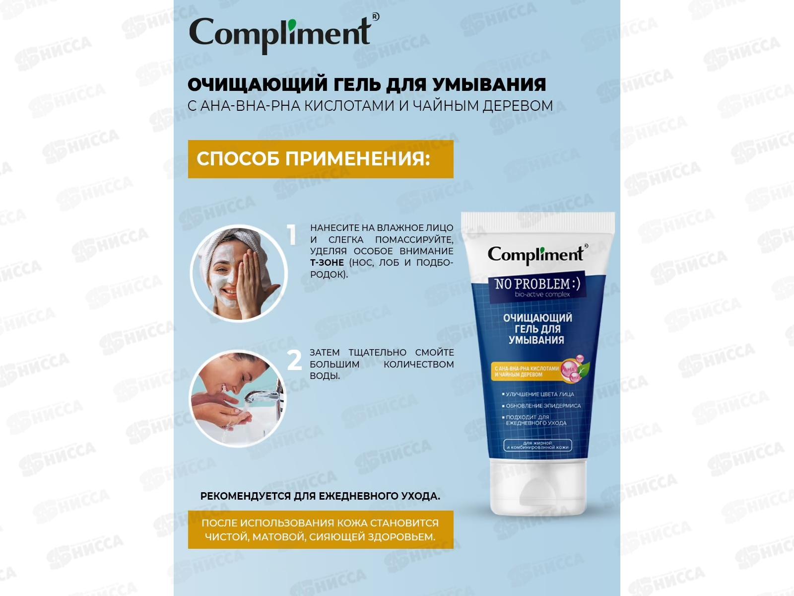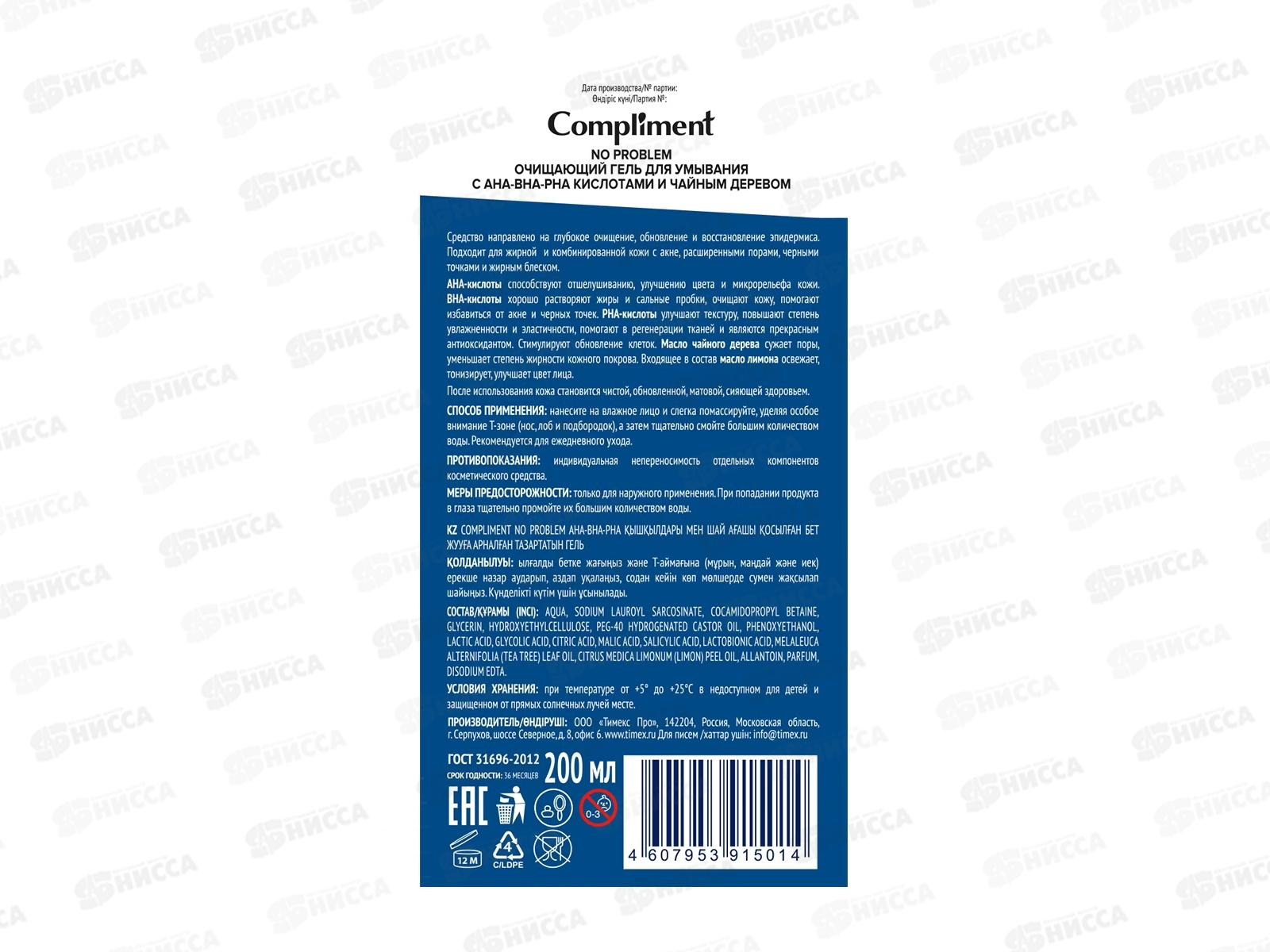 КОМПЛИМЕНТ No Problem Очищающий гель для умывания с кислотами 200мл *12