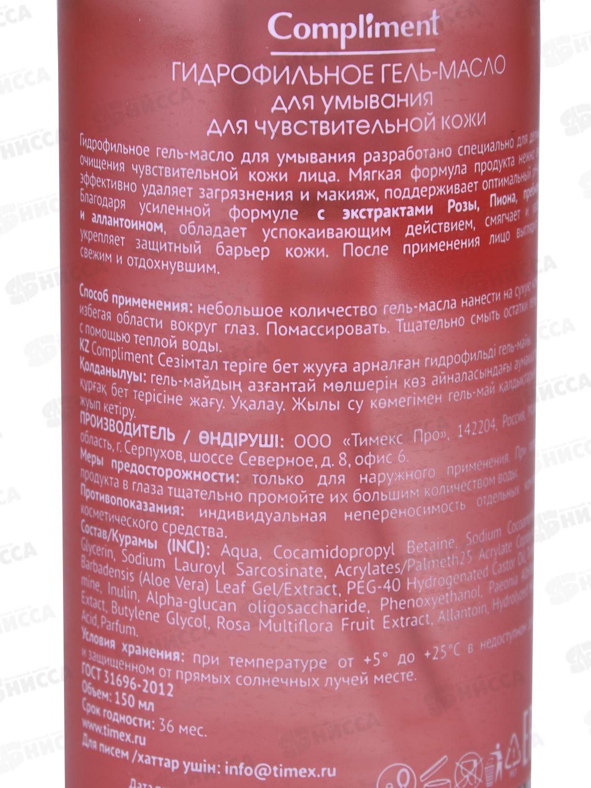 КОМПЛИМЕНТ Гидрофильное гель-масло для умывания чувствит кожи 150мл *8