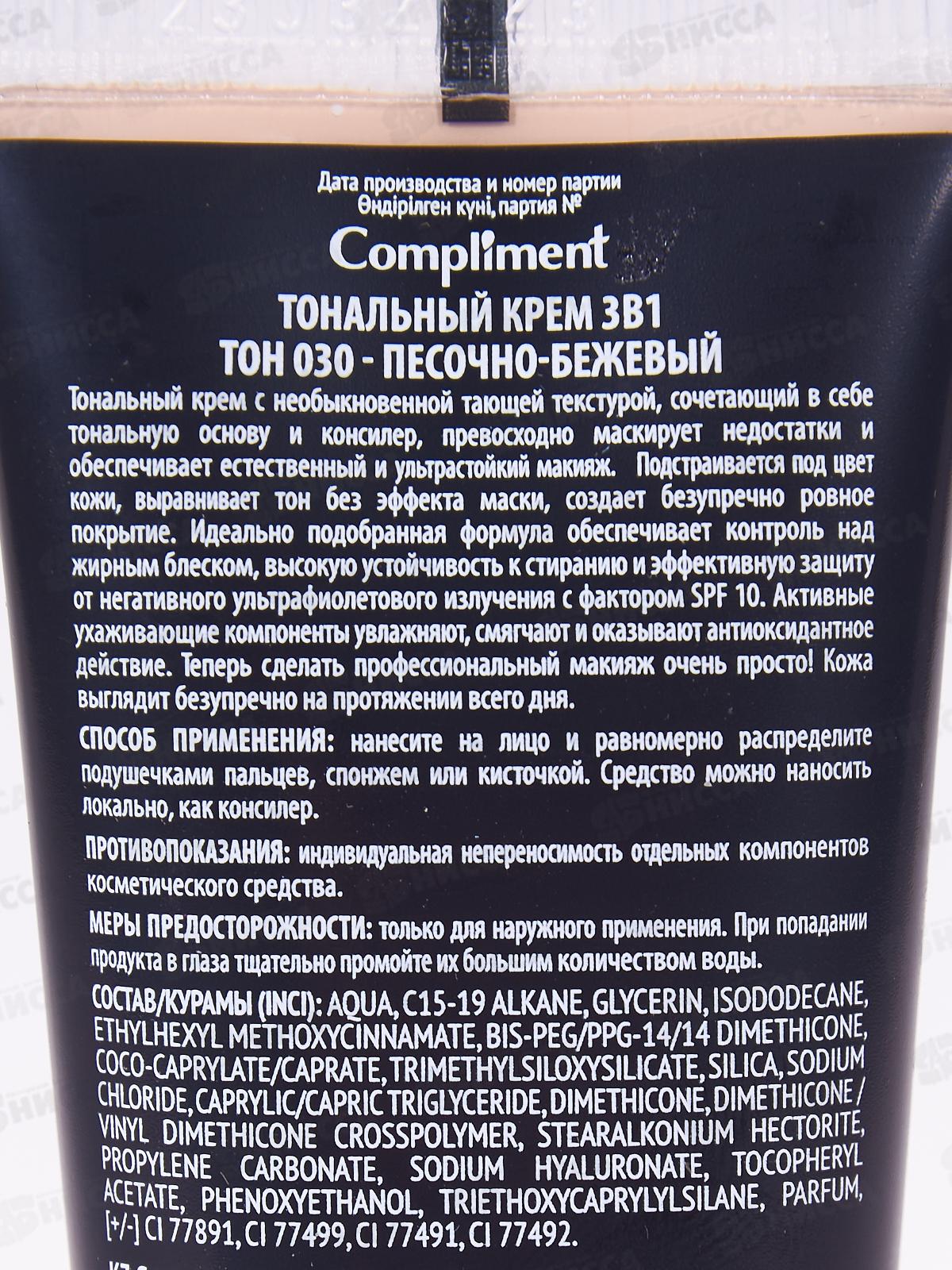КОМПЛИМЕНТ Тональный крем 3в1 №030 Песочно-бежевый 30мл *12
