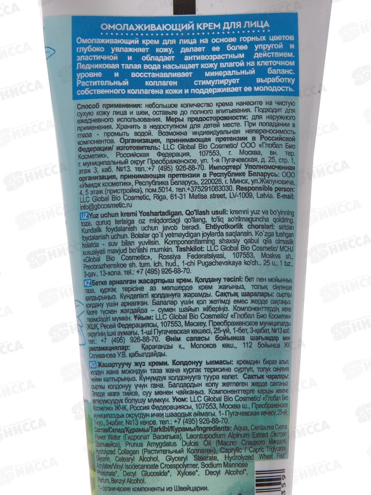 Активные компоненты: ледниковая талая вода, эдельвейс, горный василек, растительный коллаген