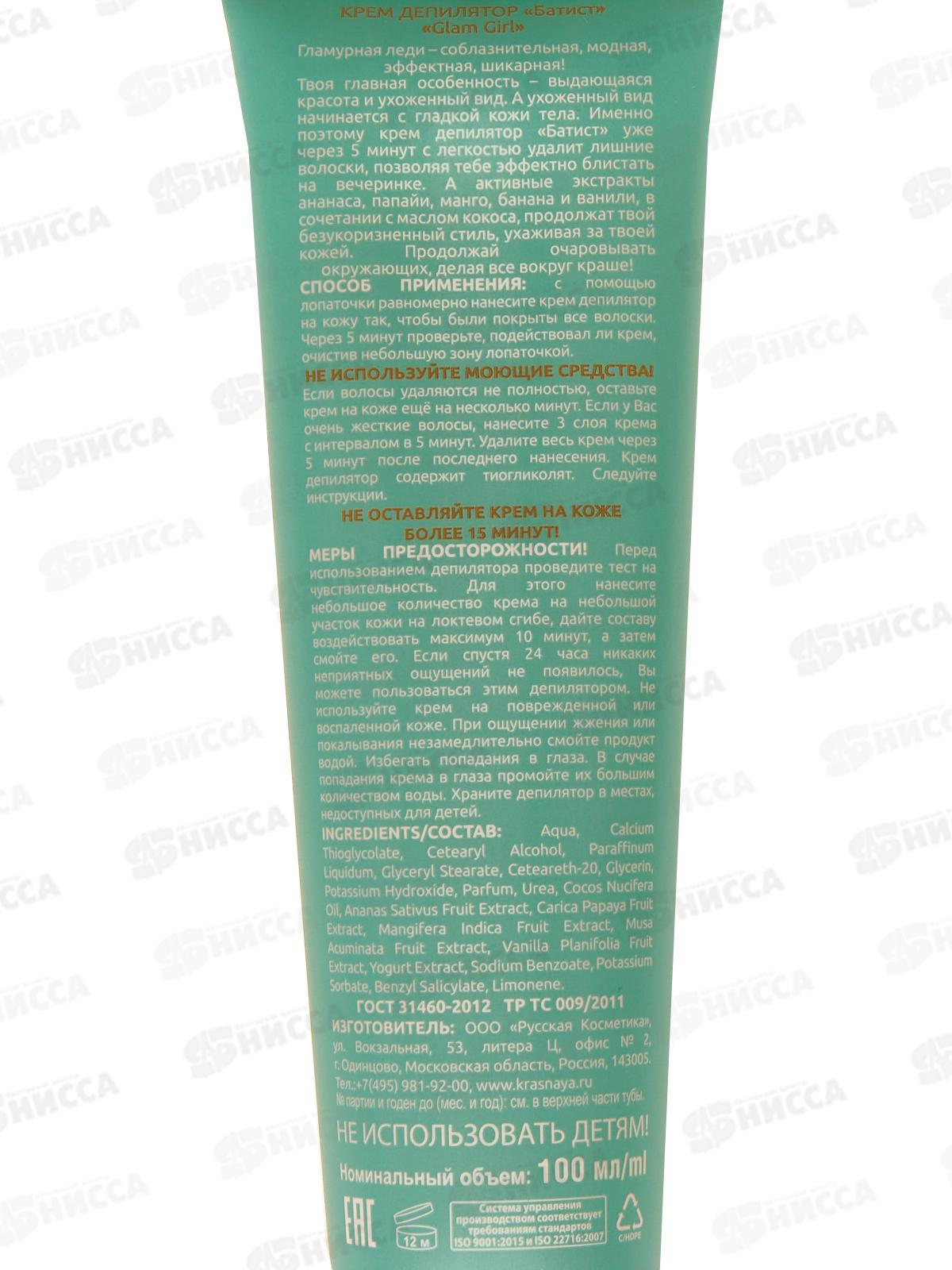 БАТИСТ крем-депилятор Glam girl 100мл *9 Срок годности до 06.26