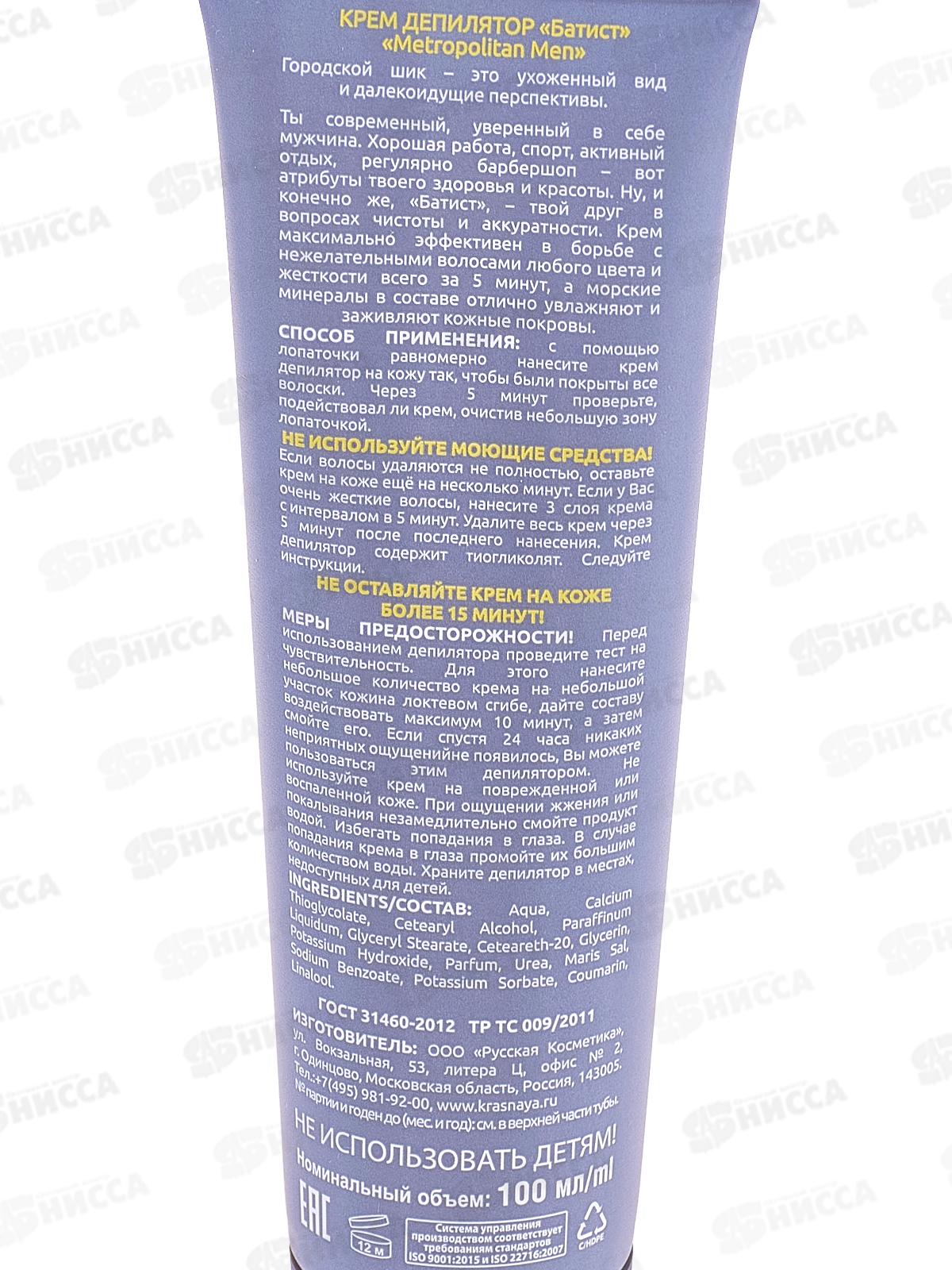 БАТИСТ крем-депилятор Metropolitan Men 100мл *9