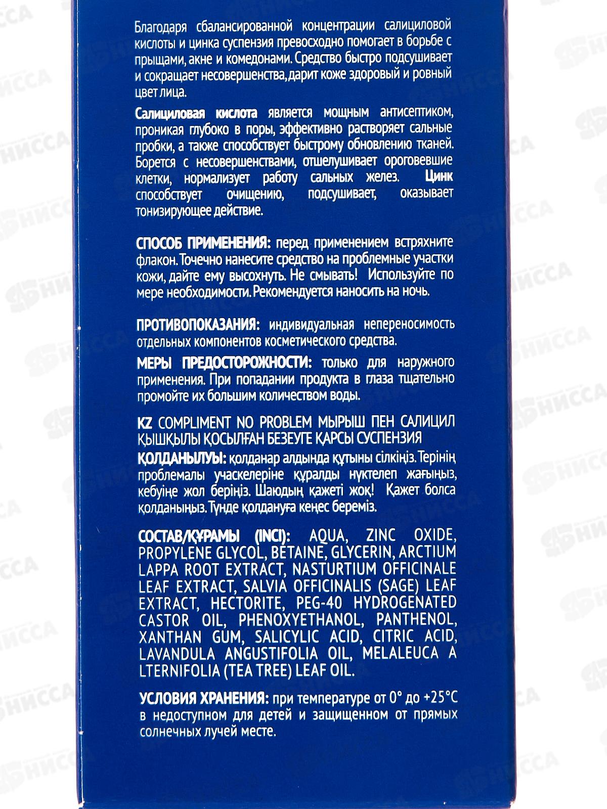 КОМПЛИМЕНТ No Problem Суспензия против прыщей с салицил кислотой 30мл