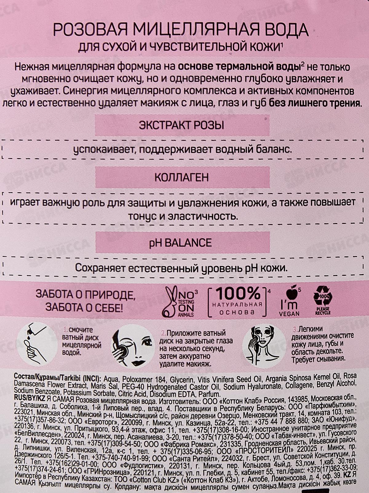 Я САМАЯ Мицеллярная вода Розовая 600мл *8