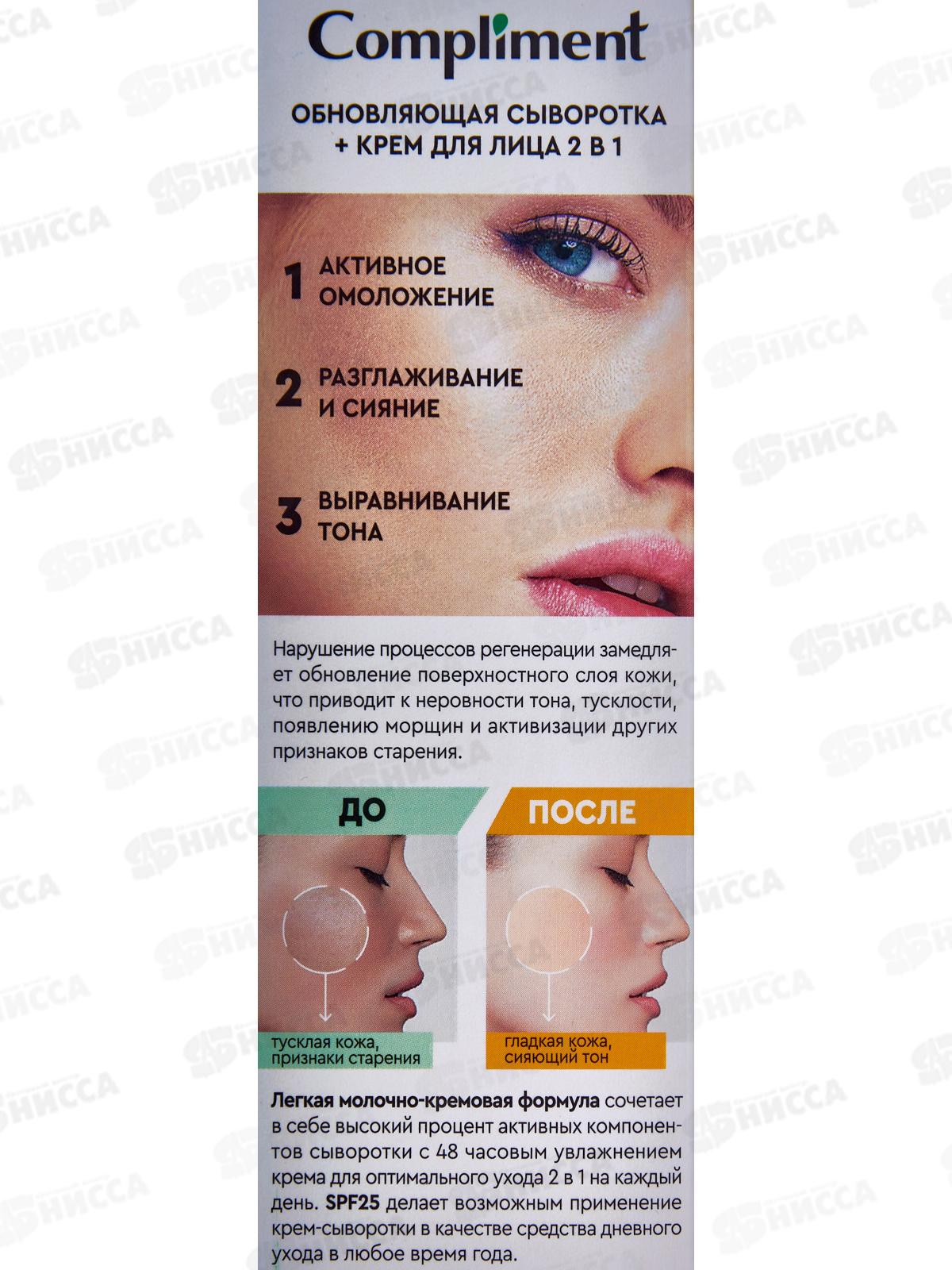 КОМПЛИМЕНТ обновляющая сыворотка+крем для лица 2в1 50мл *12