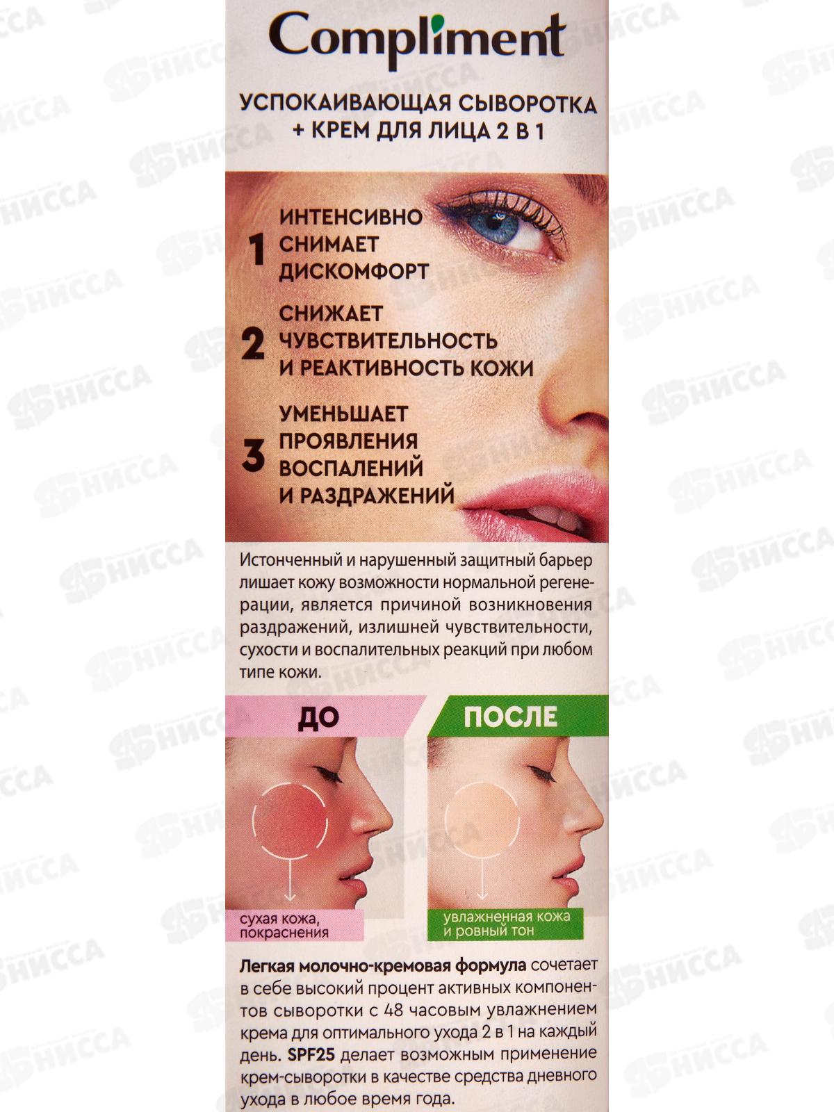 КОМПЛИМЕНТ успокаивающая сыворотка+крем для лица 2в1 50мл *12