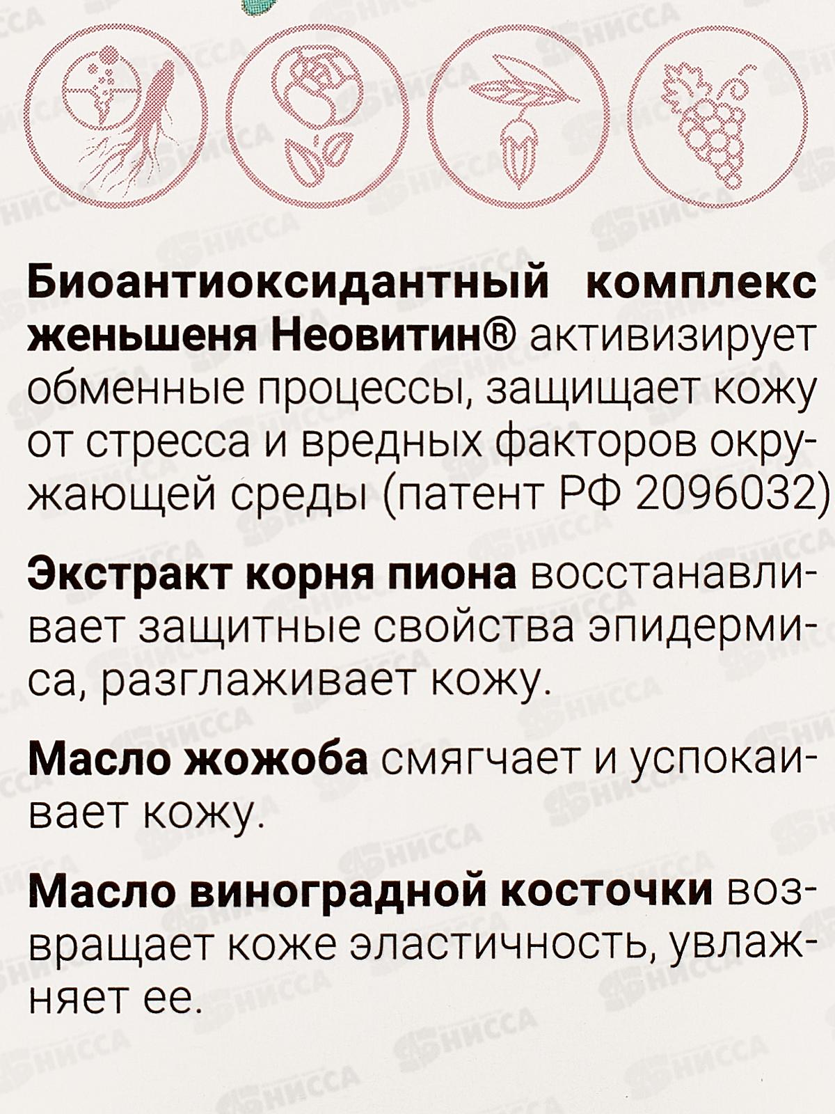 Активные компоненты: комплекс женьшеня Неовитин, экстракт корня пиона, масла жожоба и виноградно