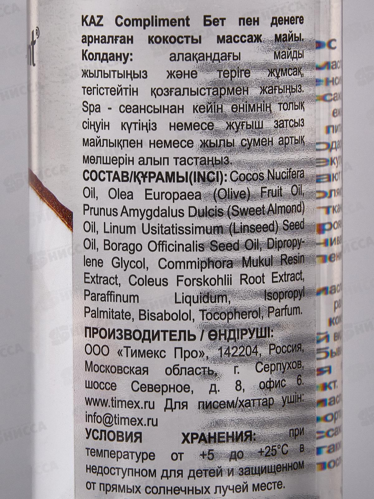 КОМПЛИМЕНТ Масло массажное для лица и тела Кокос 200мл *12