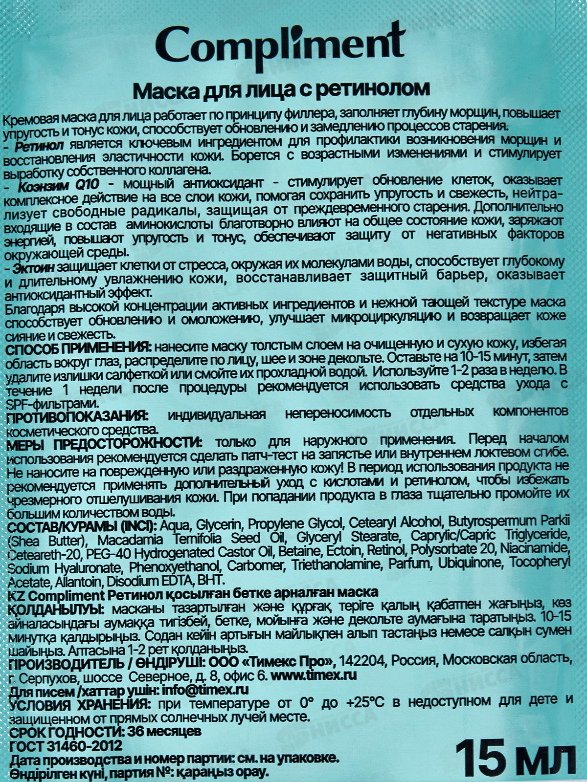 КОМПЛИМЕНТ Саше маска для лица с ретинолом 15мл *24
