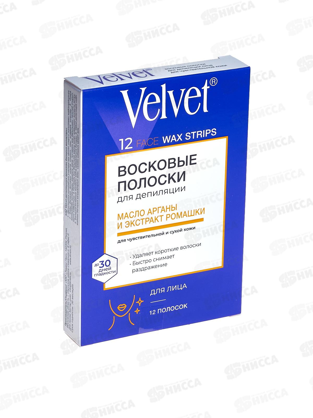 ВЕЛЬВЕТ Восковые полоски для лица чув кожи Масло арганы , ромашка 12шт *24