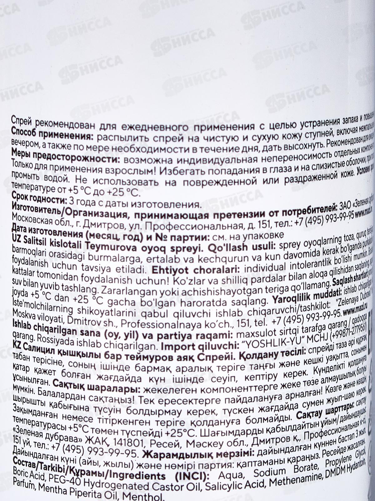 PH Спрей для ног Теймурова с салициловой кислотой 150мл З.Д. *15