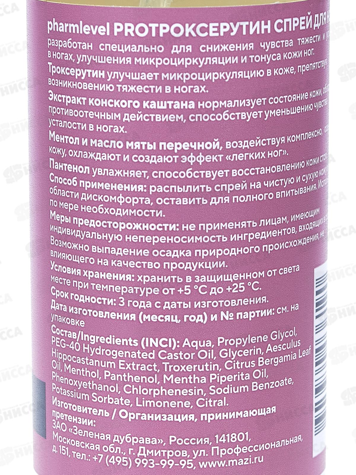Состав: вода, пропиленгликоль, мочевина, гидрогенизированное касторовое масло ПЭГ?40, глицерин, экстракт конского каштана (Aesculus Hippocastanum), экстракт ламинарии пальчато?рассечённой (Laminaria Digitata), феноксиэтанол, троксерутин, кроссполимер акрилатов и С10?30 алкилакрилата, масло листьев бергамота (Citrus Bergamia), масло мяты перечной (Mentha Piperita), гидроксид натрия, ментол, этилгексилглицерин, пантенол, бензоат натрия, сорбат калия, лимонен, цитраль, линалоол.