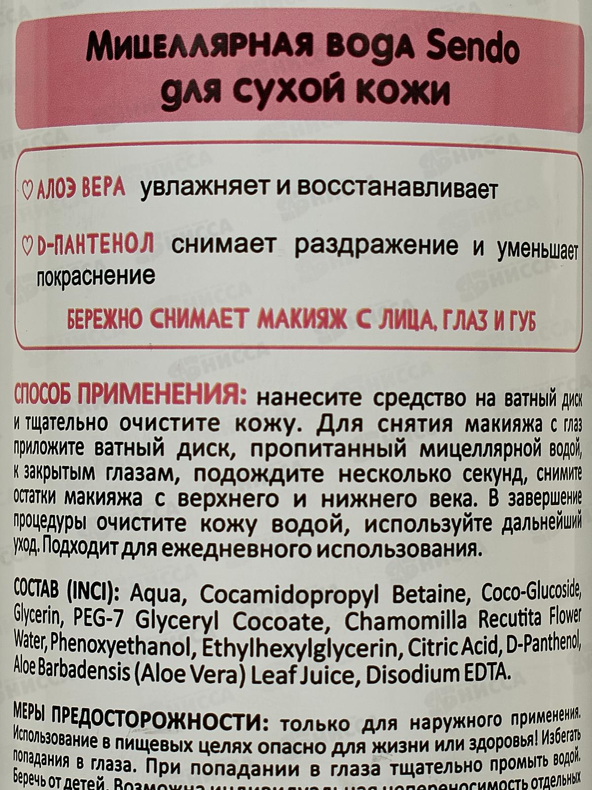 Sendo Мицеллярная вода для сухой кожи 250мл *24