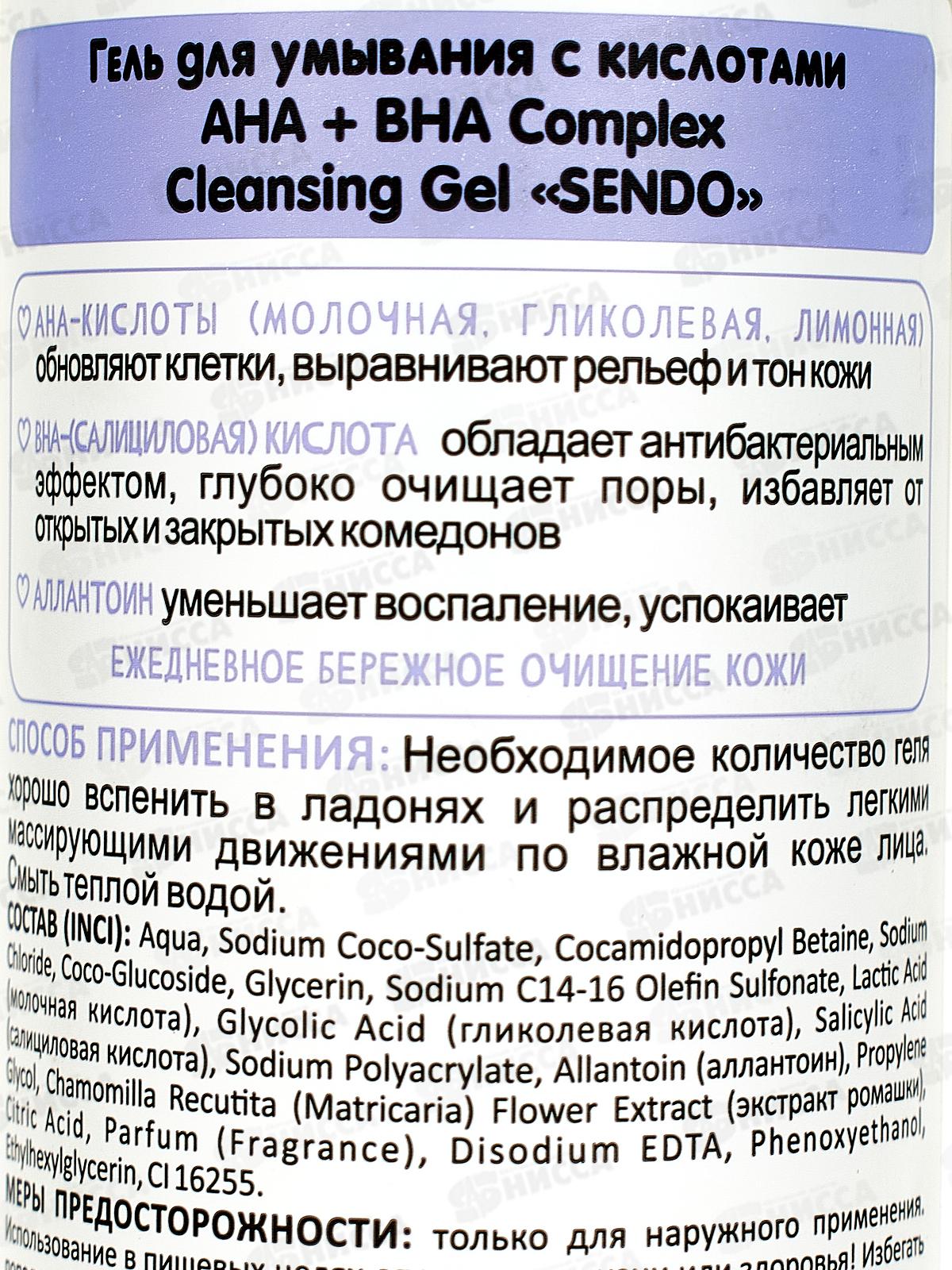 Sendo Гель для умывания С кислотами АНА+ВНА 200мл *24