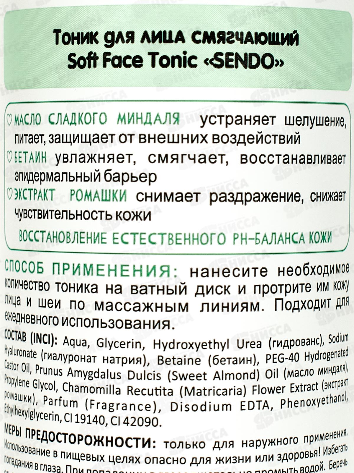 Состав: вода, экстракт ромашки аптечной (матрикарии), экстракт красного винограда, глицерин, кокоамфоацетат натрия, глицерил кокоат ПЭГ?7, гидрогенизированное касторовое масло ПЭГ?40, Д?пантенол, молочная кислота, тетранатрий ЭДТА, отдушка, метилхлороизотиазолинон, метилизотиазолинон, CI 19140, CI 42090.